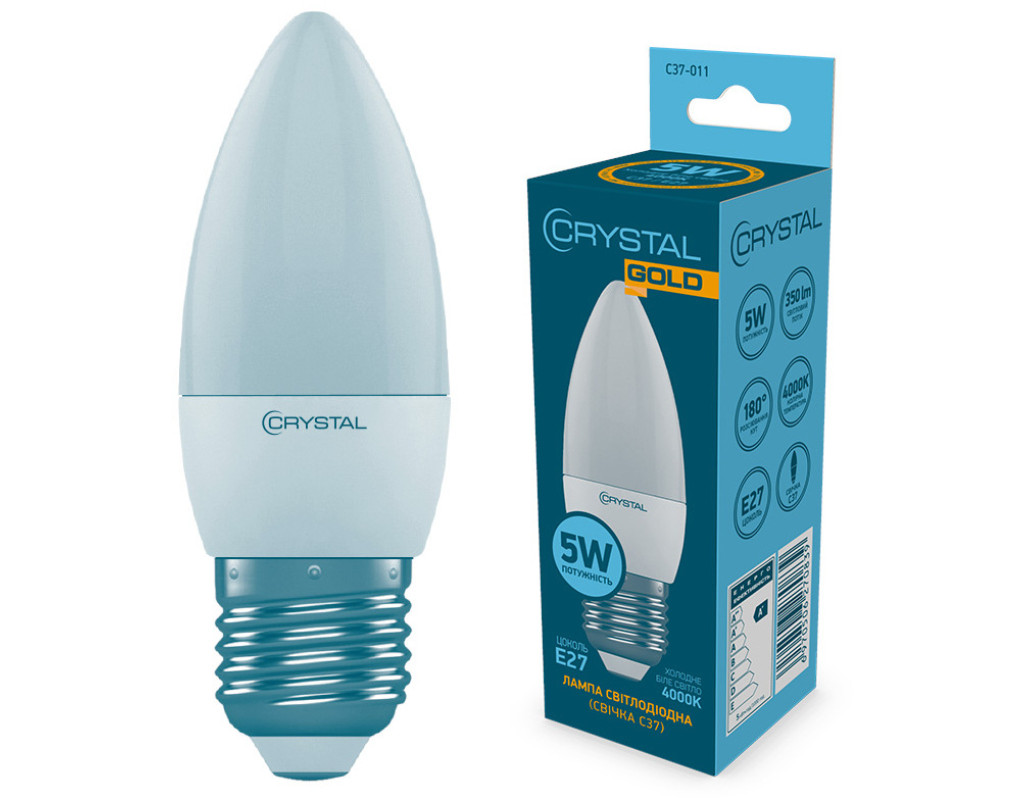 Світлодіодна лампа з матовою колбою у формі свічки зі світловіддачею понад 85лм/Вт. Оснащена вбудованим стабілізованим джерелом живлення. До електромережі напругою 220 В підключається без додаткових пристроїв. Використовується у світильниках загального призначення, люстрах та для декоративної підсвітки. |