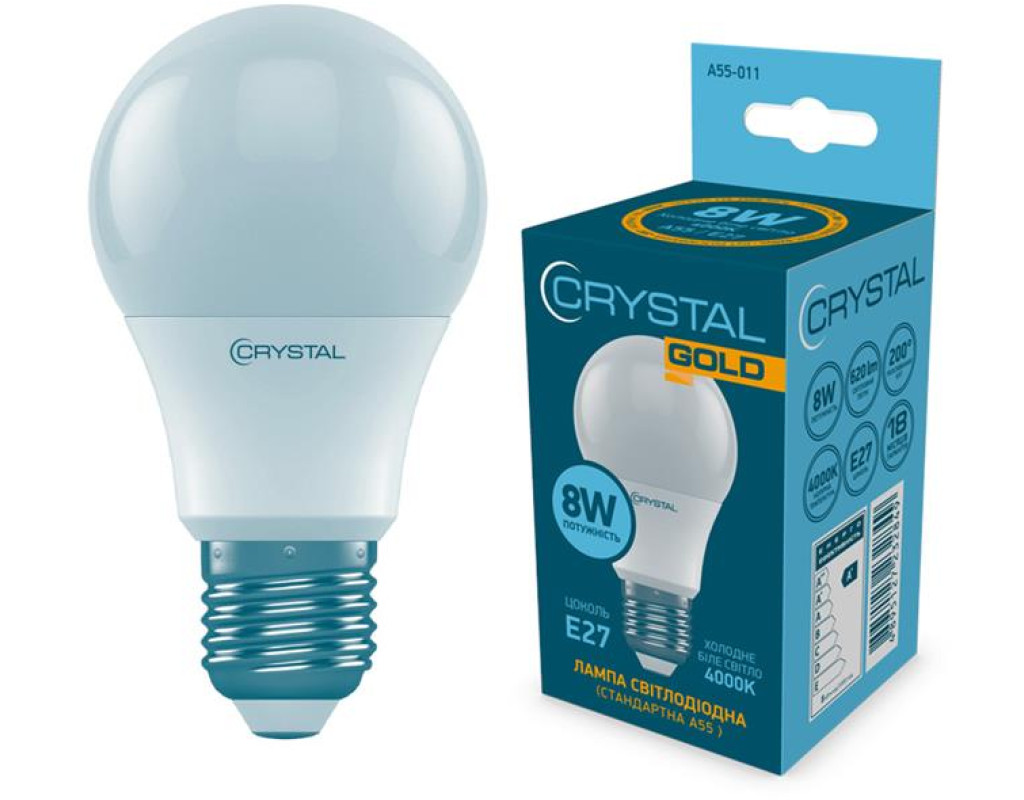 | Світлодіодна лампа стандартна 8W Е27 4000K A55 CRYSTAL GOLD A55-011 відноситься до LED ламп нового покоління. ЛІД лампа забезпечує восьмикратну економію в порівнянні з аналогічними за світловими показниками лампами розжарювання. При цьому дані лампочки також виграють у ламп розжарювання та за терміном експлуатації: вони служать до 30 разів довше.