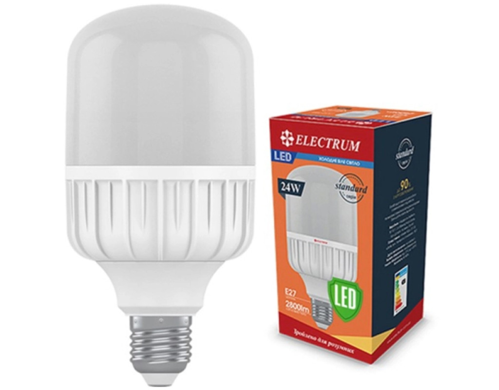 Світлодіодна промислова лампа Electrum з опаловою колбою циліндричної форми, що має світловіддачу більш ніж 90 лм/Вт. До електромережі напругою 220 В під'єднуються без додаткових пристроїв. У лампах використовуються стабілізовані IC-драйвери та світловипромінювальні модулі на SMD LED. Промислові лампи придатні для загального освітлення виробничих, складських, допоміжних приміщень, зокрема з високими стелями (вище ніж 4 м), у складі світильників і без них.