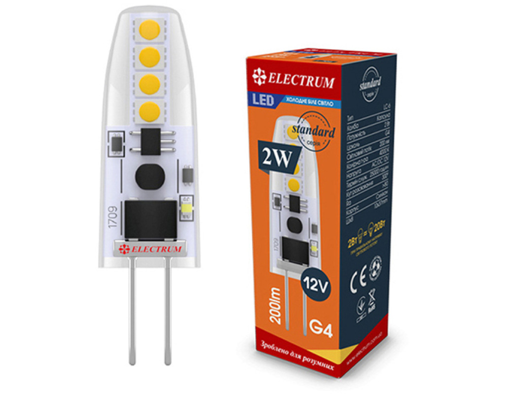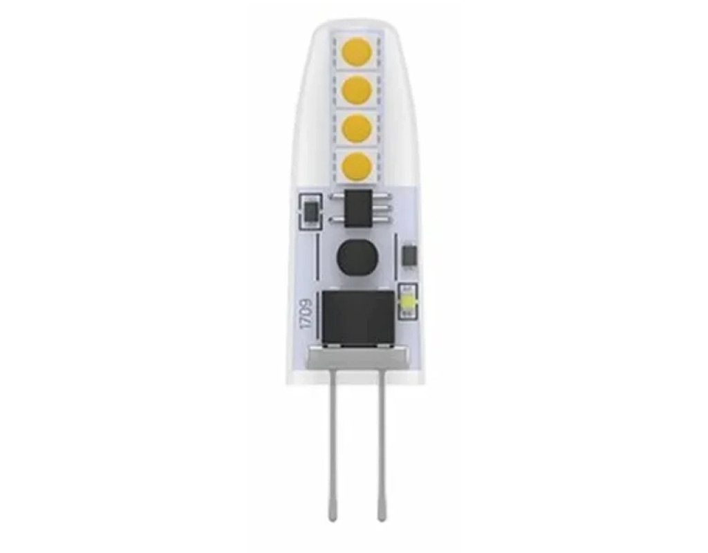 Світлодіодна лампа з прозорою силіконової колбою у формі капсули, що володіє світловіддачею більше 90 Лм/Вт. Оснащена вбудованим джерелом живлення. Призначена для використання в світильниках з цоколем G4 для декоративного підсвічування. |