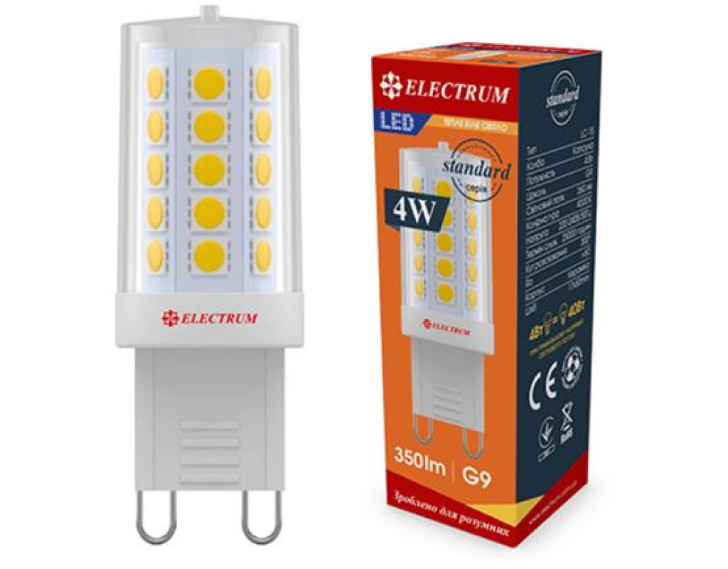 | Лампа світлодіодна капсула ELECTRUM 4W G9 3000K в керамічному корпусі A-LC-1895 розрахована на використання у побутових освітлювальних приладах (люстри та бра) з типом цоколя G9. LED лампа має прозору колбу та виконана у формі капсули, і при цьому дуже компактна: габаритні розміри становлять лише 50 на 17 мм.