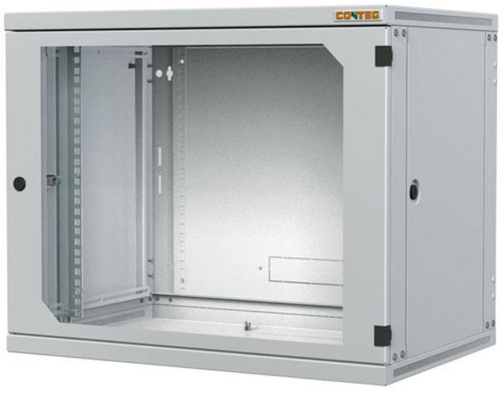Шафа настінна Conteg 15U, глибина 500 (RUN-15-60 / 50-I) Кріпиться до стіни і дозволяє отримати розширений рівень доступу до встановленого обладнання. Він забезпечує розміщення комутаційних панелей, активного обладнання. Корпус виконаний з надійного листової сталі товщиною 1.25 мм. Дверцята оснащені замком з прапорцевим механізмом запирання, який допомагає уникнути псування і розкрадання майна сторонніми особами. Також вона обладнана вікном із захисного скла (EN 12150-1), що полегшує інспектування, надає можливість стежити за підключеннями, сигнальними вогнями, не відкриваючи саму дверцята. Особливості: Легкий доступ до встановленого обладнання через вхідні двері. Отвори розташовані в задній частині шафи для прокладки і введення кабелів уздовж стіни. Двері мають ліву та праву навішення. Отвори закриті зсувними заглушками з смушковими гайк |