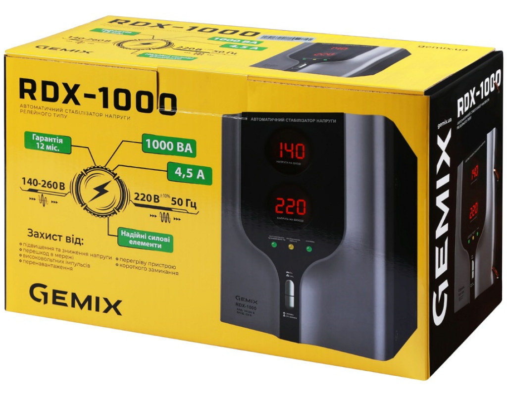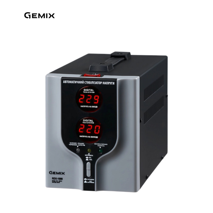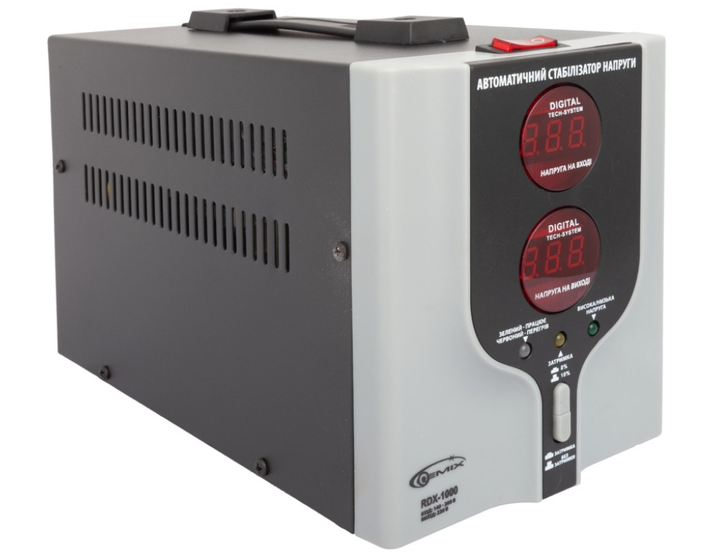 Автоматичний стабілізатор напруги, однофазний, релейного типу. Призначений для забезпечення стабільного електроживлення та захисту побутового обладнання (електронасосів, комп'ютерів, телевізорів тощо) від підвищеної, зниженої напруги та стрибків напруги в електромережі. Принцип дії полягає в автоматичному перемиканні секцій (обмоток) автотрансформатора за допомогою електромагнітних реле. Стабілізатор забезпечує вихідну напругу у формі чистої синусоїди, напругу на рівні 220 В із точністю ± 10%. Час передавання менш ніж 0,5 сек. Час затримки виходу є в межах 6/120 сек. Захист від високої вихідної напруги спрацьовує за 255 В