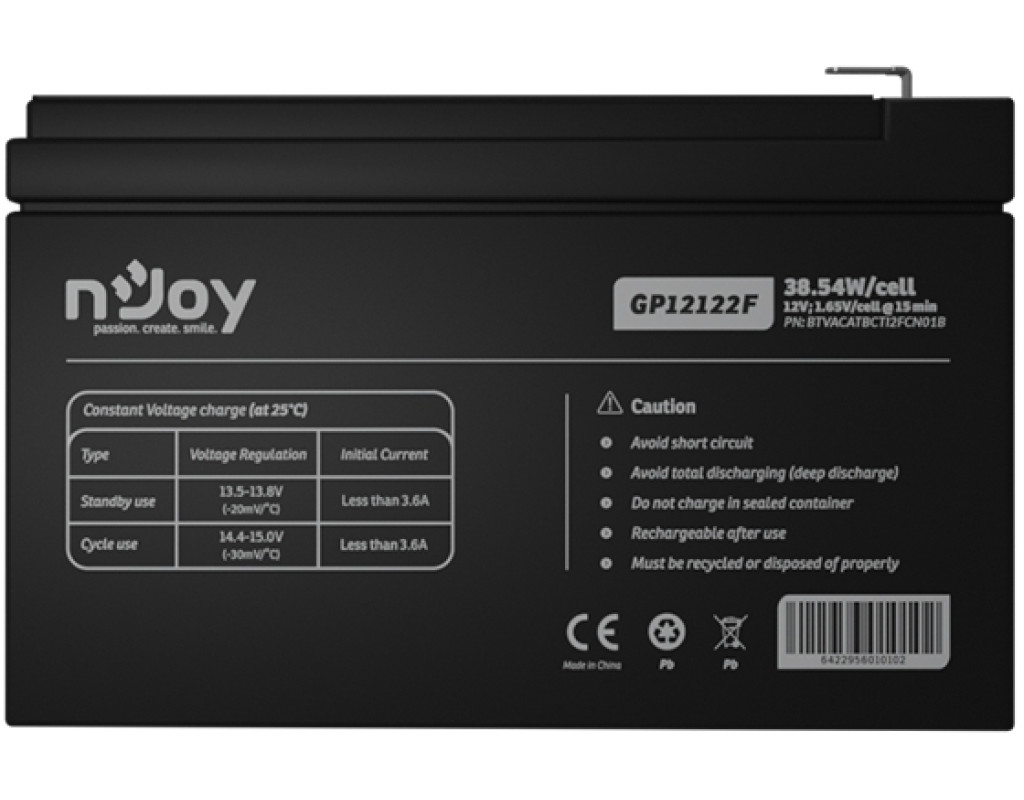Акумулятор має відмінний час зарядки і перезарядки, а також розрахунковий термін служби в плаваючому режимі і в режимі очікування від 5 до 8 років. Ви отримаєте більше 260 циклів при 100% глибині розряду. Ви можете найкраще використовувати акумуляторні або охоронні системи, системи сигналізації, ДБЖ, медичне обладнання, обладнання зв’язку, системи аварійного живлення, електроінструменти, іграшки, кабельне телебачення, контрольне обладнання. |