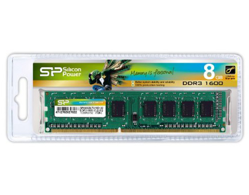 | DDR3 SDRAM - це третє покоління синхронної динамічної пам'яті з довільним доступом та подвоєною швидкістю передачі даних. Переваги в порівнянні з DDR2: більш висока пропускна здатність (до 19200 МБ / с), понижене тепловиділення (результат зменшення напруги живлення), менше енергоспоживання та поліпшене енергозбереження. Модуль пам'яті DDR3 8GB 1600 MHz Silicon Power (SP008GBLTU160N02) - це модуль пам'яті, який працює з тактовою частотою 1600 MHz, і з піковою швидкістю передачі даних 12800 МБ / с. Модуль пам'яті має параметр CL11, що означає величину латентності, рівну 11. CAS-латентність - перший і найважливіший параметр в таймінгах, означає число тактів, необхідних для видачі даних на шину. |