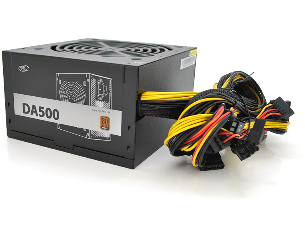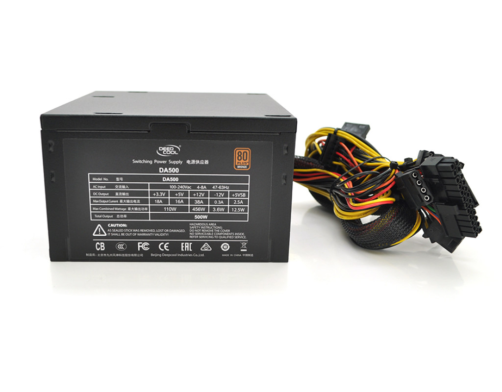 | Блок живлення DeepCool DA500 має такі характеристики: - Потужність: 500 Вт - Сертифікація енергоефективності: 80PLUS Bronze, що вказує на високу енергоефективність та економію електроенергії. - Діаметр вентилятора: 12 см, що забезпечує ефективне охолодження та знижує рівень шуму. - Колір чорний - Розміри: 150×140×86 мм - Поставляється у зручній коробці (Box), що полегшує його зберігання та транспортування. Цей блок живлення підходить для більшості сучасних систем, забезпечуючи стабільне електроживлення та захист від перевантажень та короткого замикання. |