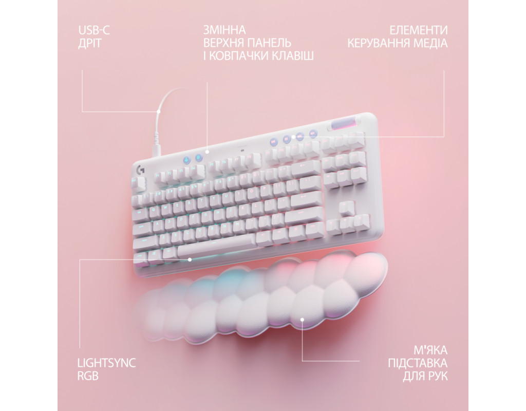 | G713 із колекції Aurora — це компактна дротова клавіатура, створена для зручності з м’якою підставкою для долонь. Повністю оснащена RGB-освітленням і механічними перемикачами GX Brown Tactile. Tactile дає вам зворотний зв’язок, який ви можете відчути, і деяке клацання. Клавіатури серії Aurora виконані з опцією зміни клавіш та опцією зміни лицьової панелі, завдяки магнітному кріпленню. Змінні клавіші та панелі пропонуються для придбання додатково, в кольорах Rosa Pink Dawn, Verde Green Flash, White Mist. |