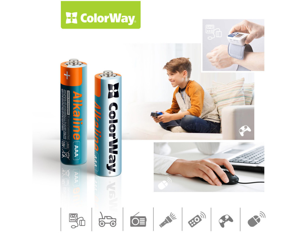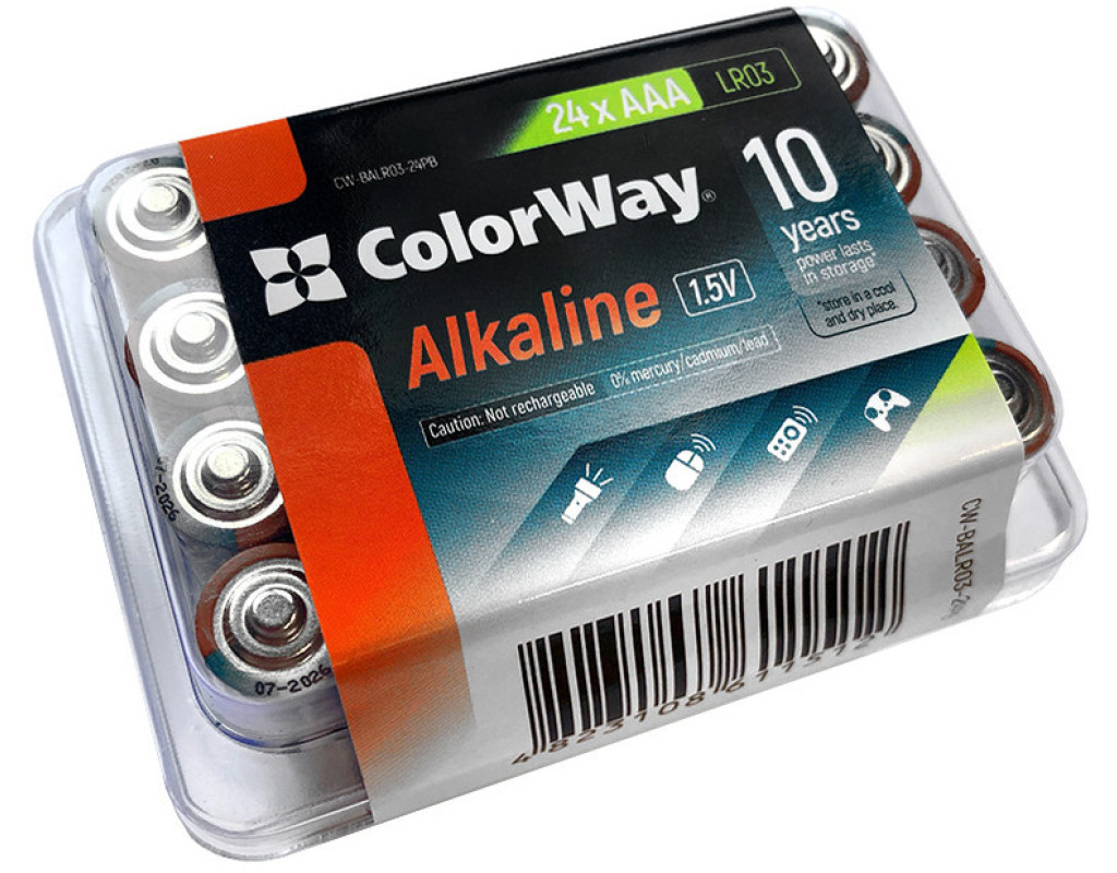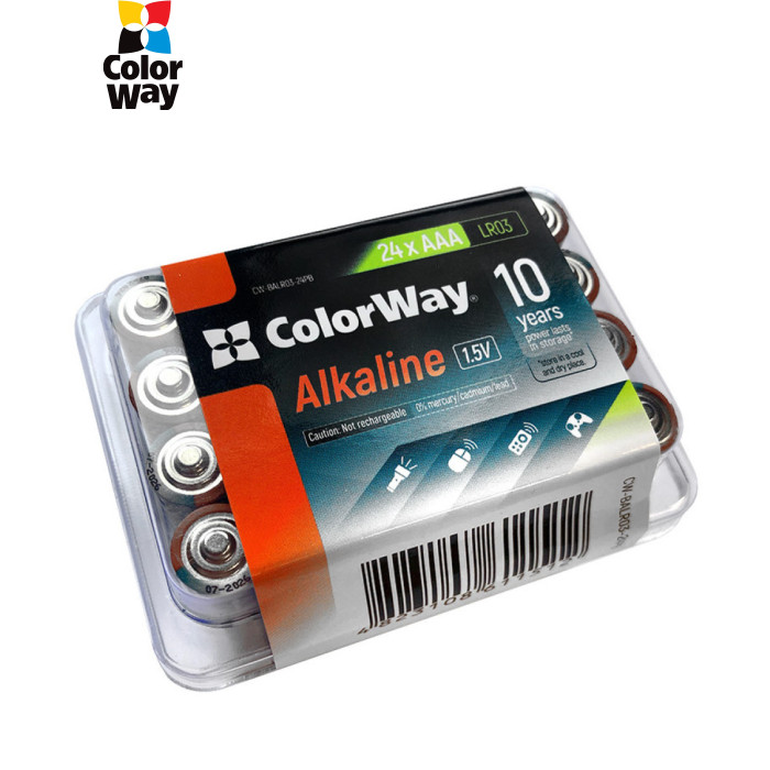 | Батарейки ColorWay AAA LR03 Alkaline Power – це надійне джерело енергії для вашої електроніки. Вони мають циліндричну форму і типорозмір AAA (LR03), що робить їх ідеальними для широкого кола пристроїв. Електрохімічна система лужна (Alkaline/LR) забезпечує тривалу роботу, до 10 разів довше порівняно з звичайними сольовими батарейками. Цей набір з 24 батарейок упакований у зручну plastic box, що робить їх зберігання та транспортування простим і безпечним. ColorWay відзначаються високою ємністю і здатні працювати навіть за низьких температур, що дозволяє їх використовувати в умовах холодного клімату. Оптимально підходять для пристроїв із середнім та високим енергоспоживанням, таких як дитячі іграшки та медичні прилади. |
