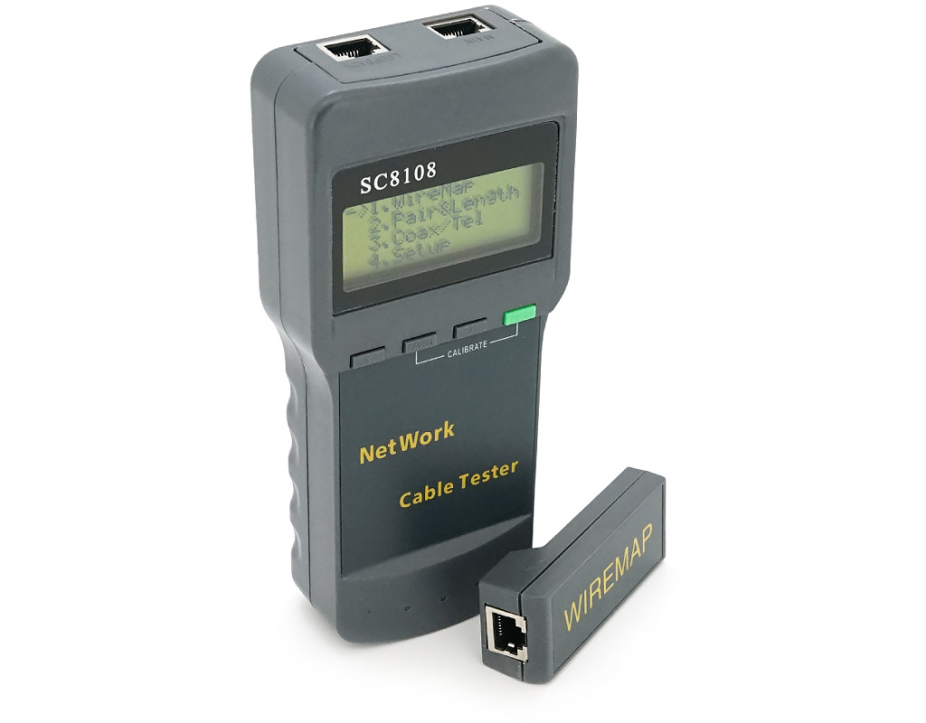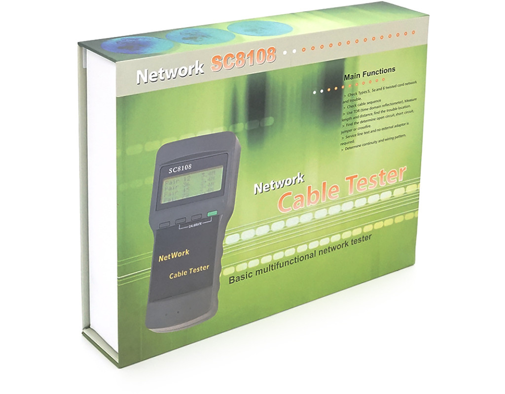 | Кабельний тестер професійний Merlion SC8108 - головний помічник у кабельних справах! Допоможе протестувати кабелі на різні показники, для правильної роботи та коректного налаштування кабельної мережі. Можливості • виявлення несправності проводки, мережного кабелю та телефонної лінії, • виявлення обриву ланцюга, короткого замикання, перехресного з`єднання, зворотного з`єднання та послідовної обмотки. • Виявлення розташування та підключення / помилка підключення. (але не для екранованого кабелю, кабель STP не працює) • вимірювання довжини кабелю та конкретне місце короткого замикання розімкнутого ланцюга. А функція динамічного калібрування довжини кабелю забезпечує точність виміру довжини до 97%. особливості: • тривалий час автономної роботи (50 годин у режимі очікування) • великий дисплей Характеристики: • роз`єм підключення: RJ-45; • довжина вимірюваної кручений пари: до 1350 м; • одиниці виміру довжини: метри, фути; • точність калібрування: 3 % (+ / -0.5 м) (калібруючий кабель > 5 M); • точність виміру: 5 % (+ / -0.5 м) (АMP, AT&T; кабель категорії 5); • дисплей: 61,6 x 25,2 мм; • живлення: 1,5В АА батареї, 4 ШТ. (В комплект поставки не входять); • колір сірий Комплект поставки: • тестер SC8108; • посібник з експлуатації (англійською мовою). |