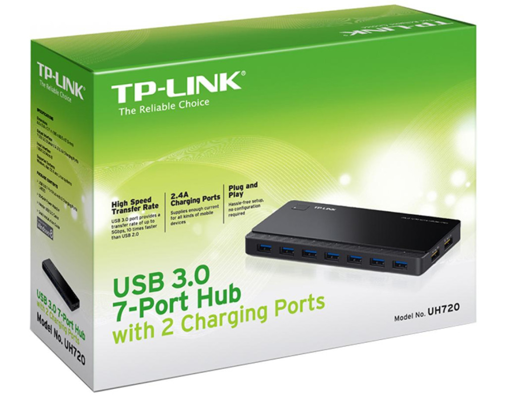 | Концентратор TP-Link UH720 7-портовий концентратор USB 3.0 - це чудове рішення для збільшення кількості USB-портів вашого комп'ютера, а також для одночасного підключення пристроїв зберігання даних, USB-мишей, принтерів та інших пристроїв. Порти USB 3.0 забезпечать швидкість передачі даних до 5 Гбіт / с, що в 10 разів швидше, ніж по USB 2.0. Завдяки двом заряджаючим портам 5В / 2,4A концентратор здатний задовольнити потреби всіх ваших мобільних пристроїв. Порти USB 3.0 забезпечують швидкість передачі даних до 5 Гбіт / с, що в 10 разів швидше, ніж по USB 2.0. UH720 додає 7 додаткових портів USB до вашого комп'ютера, усуваючи необхідність перемикання пристроїв. Два спеціальних порту 2,4А подають достатню кількість енергії для зарядки всіх типів мобільних пристроїв. Розумний чіп дозволяє розпізнавати підключені пристрої і налаштовувати вихідний струм, дозволяючи вам заряджати їх максимально швидко. Множинні функції захисту вбережуть ваші пристрої від можливих пошкоджень при передачі даних. |