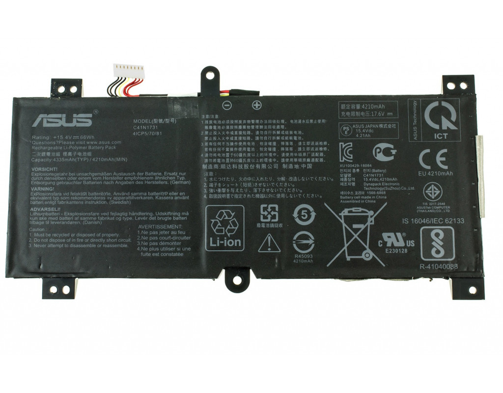 Дана акумуляторна батарея може мати такі маркування (або PartNumber): C41N1731, 0B200-02940000 Акумуляторна батарея підходить для наступних моделей ноутбуків: Asus Rog STRIX G515 series Важно! Существуют разновидности данных батарей с отличием по креплению и подключению - внимательно сравнивайте с приведенной фото! У зв'язку з динамічно розвиваючимися технологіями і регулярно оновлюваними лінійками ноутбуків, всі вищевказані списки можуть бути не повними. |