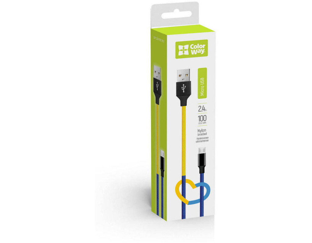 Кабель синьо-жовтого кольору, що символізує свободу та незалежність України. Підходить для синхронізації та заряджання пристроїв. Забезпечує можливість швидкої передачі даних, а також дозволяє заряджати будь-який сумісний пристрій через USB-порт. Основною функціональною перевагою є швидка та безпечна передача даних та зарядка.