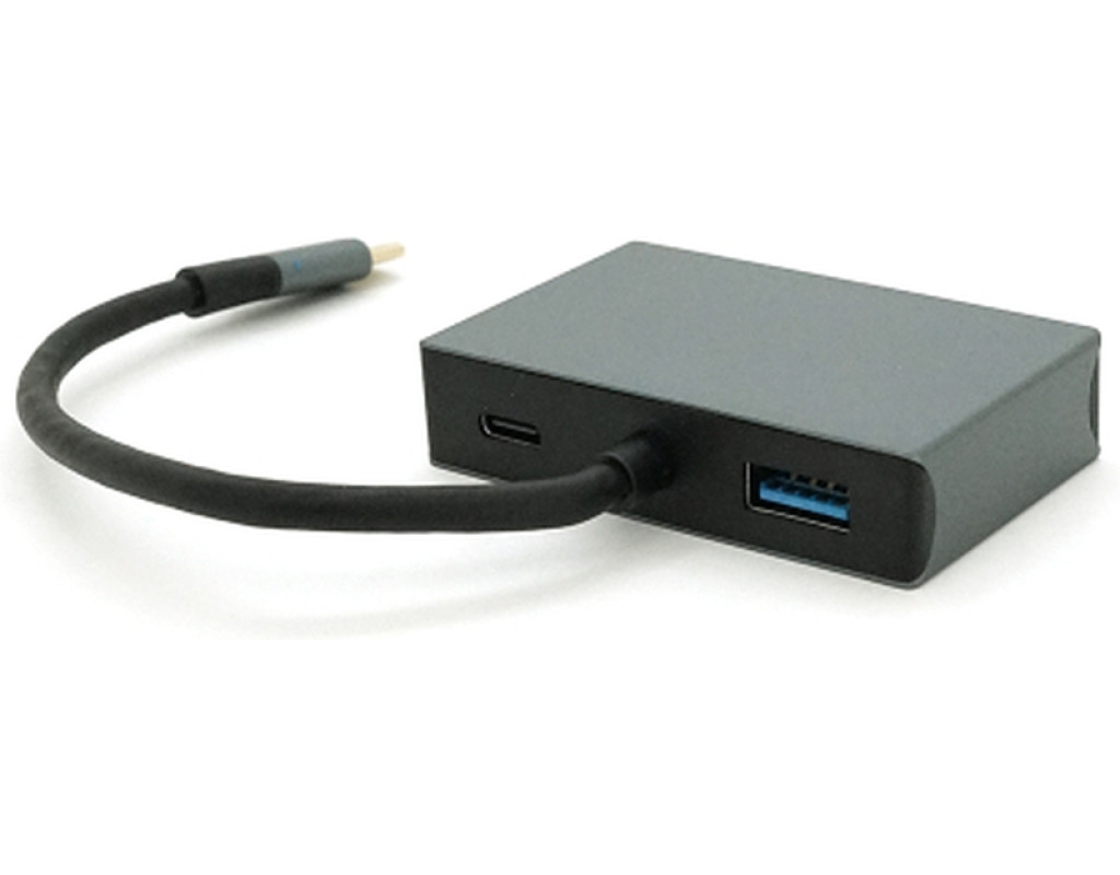 Цей адаптер має Хаб Type-C(тато) алюмінієвий з HDMI(мама) портом, VGA(мама) портом, USB3.0(мама) портом та PD(мама) портом. Його довжина становить 23 см, і він виконаний у сріблястому кольорі. |