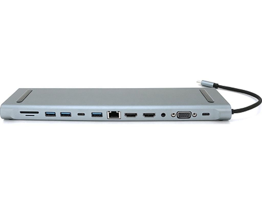 Хаб-конвертор 12 в 1 Type-C (тато) на Type-C(мама)+2*USB2.0(мама)+USB3.0(мама)+2*HDMI(мама)+VGA(мама)+ SD/TF+RJ45+ jack3.5 (мама)+PD, 10cm, Silver, Box |