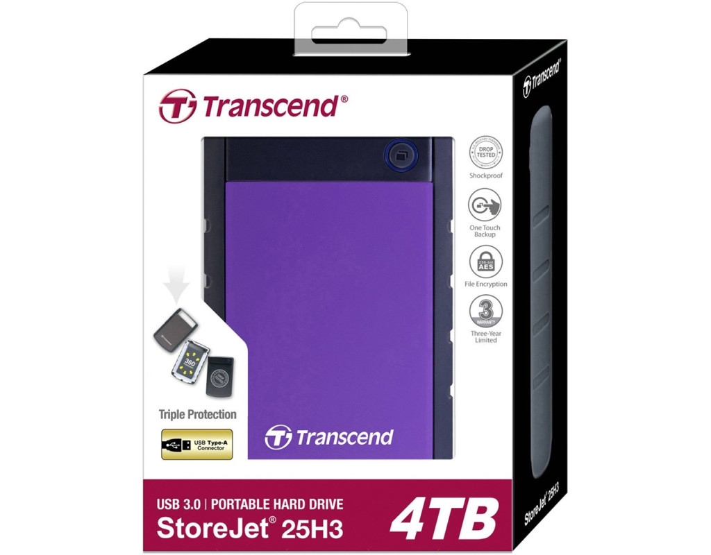 Портативний жорсткий диск StoreJet 25H3P має міцний та надійний корпус. Накопичувач дозволить вам легко зберігати і ділитися файлами, де б ви не знаходилися. Два варіанти забарвлення, темно-синій та фіолетовий. Нехай зберігання даних буде стильним! Надійний захист від ударів Триступінчастий захист від ударів StoreJet 25H3P відповідає військовим стандартам США захисту від падіння MIL-STD-810G і гарантує високий рівень безпеки інформації, що зберігається на накопичувачі. Трикомпонентна система захисту від ударів складається з прогумованого силіконового чохла, внутрішнього демпфуючого підвісу накопичувача та міцного жорсткого корпусу. USB Type-A: міцний та надійний роз'єм Портативний жорсткий диск StoreJet 25H3P має роз'єм USB Type-A, який витримує до 10 тисяч циклів з'єднань-відключень, гарантуючи надійний захист ваших файлів. Блискавична швидкість передачі Оснащений інтерфейсом USB 3.1 Gen 1, StoreJet 25H3P має неймовірно високу швидкість роботи, демонструючи швидкість передачі до 5 Гб/с. Велика ємність. Збережіть все, що захочете. StoreJet 25H3 підходить для пристроїв під керуванням ОС Mac та Windows. Максимальна ємність накопичувача в 4 ТБ дозволяє зберігати фотографії та відео у високій якості, а також велику кількість документів. Велика ємність та відмінна сумісність роблять накопичувач ідеальним рішенням для зберігання ваших файлів! Резервне копіювання за одним натисканням кнопки StoreJet 25H3P підтримує функцію автоматичного резервного копіювання за одним натисканням кнопки. За допомогою цієї ж кнопки користувач може вимкнути та знову підключити жорсткий диск до комп'ютера без необхідності його фізичного від'єднання від гнізда. Екстремальний захист, підвищена безпека Пристрої зберігання Transcend мають ексклюзивні функції безпеки та блокування накопичувача. За допомогою програмного забезпечення Transcend Elite можна захистити свої дані відповідним високим стандартам інформаційної безпеки. Корисне програмне забезпечення Transcend Elite – це багатофункціональний програмний пакет, сумісний з macOS, Windows та Android, який допомагає користувачеві працювати зі своїми даними та файлами. Програми для ПК та мобільних пристроїв доступні для безкоштовного завантаження з веб-сайту Transcend та Google Play. Transcend Elite дозволяє створювати та відновлювати резервні копії, шифрувати дані, виконувати хмарне резервне копіювання та блокувати накопичувач. Transcend пропонує ексклюзивну безкоштовну програму Transcend RecoveRx для пошуку та відновлення віддалених файлів, таких як цифрові фотографії, документи, аудіо та відео. |