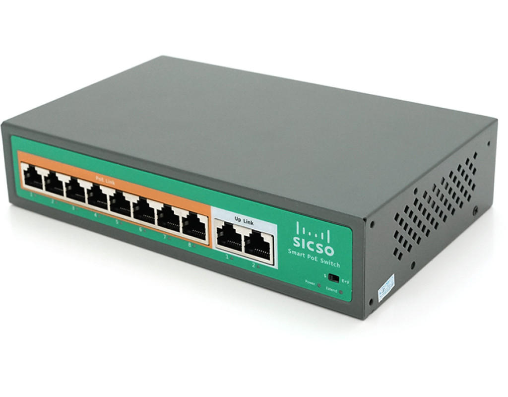 | Комутатор POE SICSO 48V з 8 портами POE 100Мбіт + 2 порт Ethernet (UP-Link) 100Мбіт, з посил. сигн. до 250м, корпус-метал, Silver, БП вбудований, Q30 |