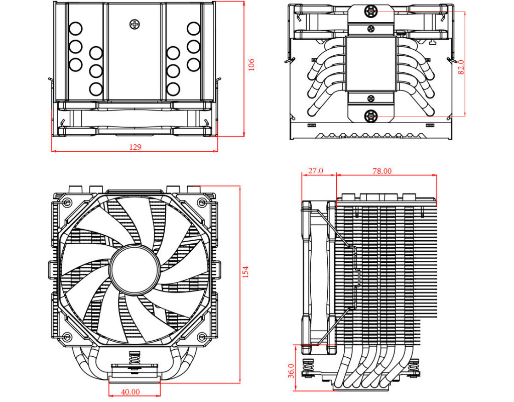 Основа радіатора виготовлена з комбінації алюмінію та міді, що дозволяє швидко відводити тепло від процесора, зберігаючи стабільні температури навіть в екстремальних умовах. Для покращення тепловідведення кулер оснащений 6 тепловими трубками, які швидко розсіюють нагрівання, підтримуючи оптимальну температуру роботи системи.