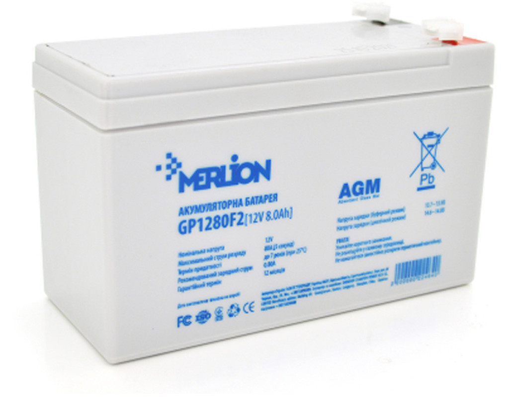 | Батарея до ДБЖ Merlion 12V-8.0Ah (GP1280F2) — це високоякісне рішення для забезпечення надійної роботи вашого обладнання. Призначена для використання в джерелах безперебійного живлення, ця батарея забезпечує стабільну напругу 12 В і має ємність 8 Аг, що дозволяє надійно підтримувати роботу пристроїв при відключенні електроенергії. Виріб оснащений типом клем F2, що сприяє простоті підключення та використання. Виготовлений за технологією AGM (Absorbed Glass Mat), ця батарея має знижений внутрішній опір в 25 мОм, що підвищує її ефективність і надійність. Здатна витримувати максимальний струм розряду до 72 А протягом 5 секунд, вона може миттєво забезпечити значну потужність. Завдяки своєму компактному розміру 150 x 65 x 95 мм та вазі 1.7 кг, батарея є ідеальним вибором для установки в різноманітні пристрої, не займаючи багато простору. Має ресурс 300 циклів та термін придатності до 7 років, що гарантує довгу і надійну експлуатацію. Інноваційна конструкція з регульованою свинцевою кислотою (VRLA) дозволяє зберігати батарею до 6 місяців при 25°C без підзарядки. Матеріал корпусу відповідає вимогам стандарту A.В.S. UL94-HB, що забезпечує високу вогнестійкість і безпеку. Батарея Merlion — це оптимальне поєднання надійності, довговічності та передової технології для вашого ДБЖ. |
