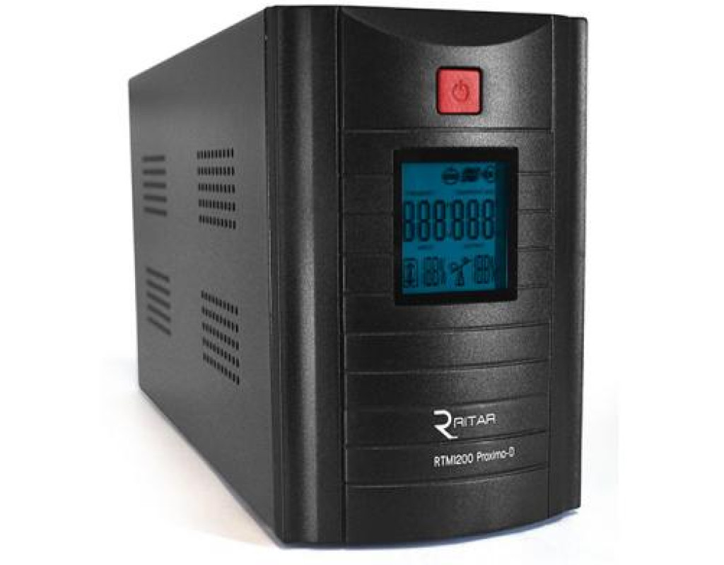 Ritar RTM1200 (720W) Proxima-D призначені для захисту персональних комп'ютерів і робочих станцій від основних неполадок з електроживленням: високовольтних викидів, електромагнітних та радіочастотних перешкод, знижень, підвищень і повного зникнення напруги в електромережі. Особливості джерела безперебійного живлення: холодний старт. Матеріал корпусу: пластик. LСD індикація. Роз'єми: 4xSCHUKO.