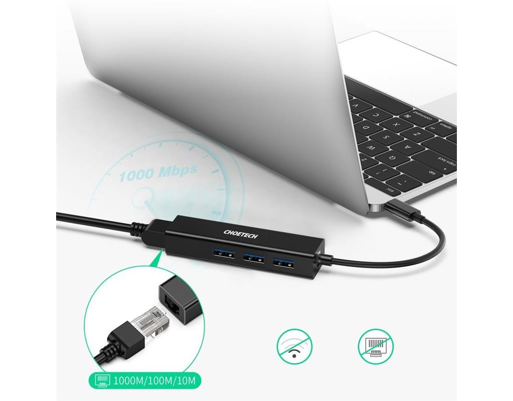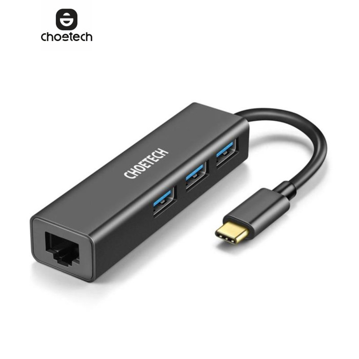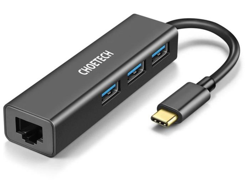| Багатофункціональний мережевий адаптер Choetech 4in1 USB Type C 3x USB 3.0 / Ethernet RJ-45 сірий