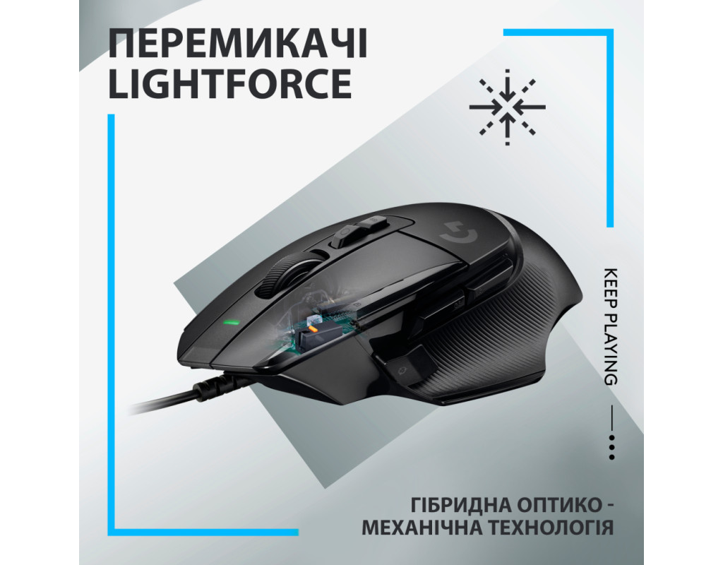 | Революційна ігрова миша для вимогливих геймерів Мишка Logitech G502 X USB Black (910-006138) втілює новітні досягнення в ігрових технологіях, що робить її ідеальним вибором для вимогливих геймерів. Це нове перевтілення легендарної G502, яке гарантує неймовірну швидкість, абсолютно точний контроль та надійну продуктивність у всіх аспектах гри. Інноваційні LIGHTFORCE перемикачі Завдяки запровадженню оптико-механічних гібридних перемикачів LIGHTFORCE, ця миша забезпечує надзвичайно високу швидкість спрацьовування. Використання оптичних елементів у поєднанні з механічними технологіями дозволяє насолодитися чітким тактильним відгуком, що робить кожен клік безпомилковим та приємним. Неперевершена точність з HERO 25K В основі G502 X лежить передовий оптичний датчик HERO 25K, який забезпечує субмікронну точність. З нульовими спотвореннями, фільтрацією і прискоренням, цей датчик надає вам максимум контролю над ігровим процесом. Висока чутливість до 25400 dpi дозволяє регулювати точність на льоту, а енергоефективність датчика HERO 25K забезпечує стабільну тривалу гру. Персоналізація за вашим бажанням Завдяки вдосконаленій кнопці зміни чутливості, ви можете адаптувати мишу під ваш стиль. Можливість переміщення та заміни кнопок дає змогу підлаштовувати їх під розмір вашої долоні й індивідуальні смаки. Комплект поставки забезпечує все необхідне, щоб ви могли завжди грати комфортно та ефективно. Легка конструкція для гнучкої гри Хоча G502 X виглядає масивно завдяки 11 програмованим кнопкам, її полегшене коліщатко прокручування та жорстка конструкція з тонкими стінками зменшили вагу миші до 100 грамів. Це дозволить вам довше зосередятися на грі без відчуття втоми. Режими прокручування на будь-який смак Полегшене коліщатко, здатне працювати в кількох режимах, надає вам вибір — швидке вільне обертання або ж покрокова точна прокрутка. Обидва режими забезпечують додатковий контроль, а нахил вліво і вправо забезпечує доступ до додаткових програмованих елементів управління. Захищений сенсор і комфорт підключення G502 X має захист сенсора від пилу та вологи, що гарантує тривалу службу без зайвих проблем. Дротове підключення через USB з довжиною кабелю у 1.8 метри забезпечує стабільний зв’язок без затримок, що є критично важливим для інтенсивних ігрових сесій. Завдяки своїм численним перевагам, серед яких якість виготовлення, функціональність і унікальність особливостей, Logitech G502 X стане незамінним аксесуаром для будь-якого гравця, особливо тих, хто захоплюється таких іграми, як World of Tanks. Вона втілює баланс між інноваціями та знайомою зручністю. Завдяки своєму стильному чорному дизайну, вона не тільки виконує свою роль, але й чудово доповнює будь-яке ігрове обладнання. |