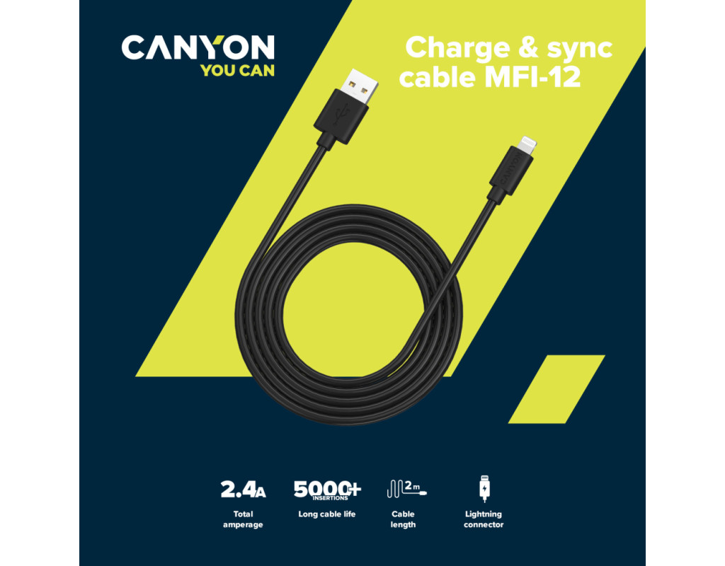 Дата кабель USB 2.0 AM to Lightning 1.0m MFI black Canyon (CNS-MFIC12B)