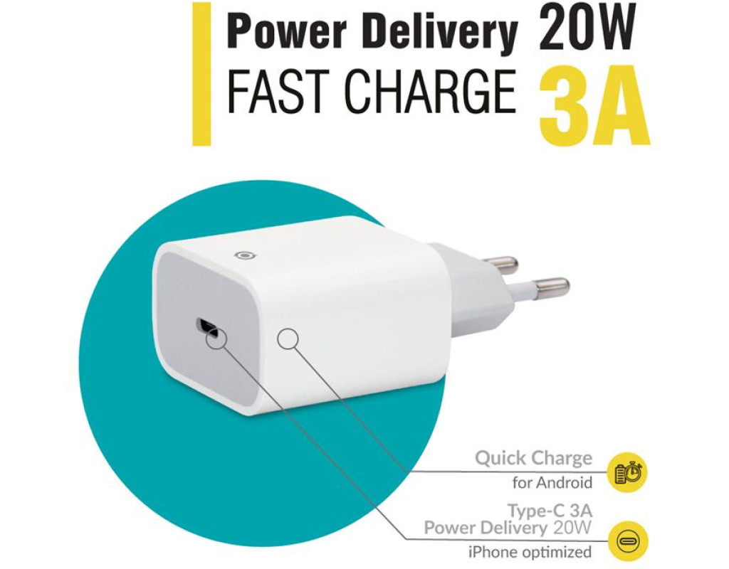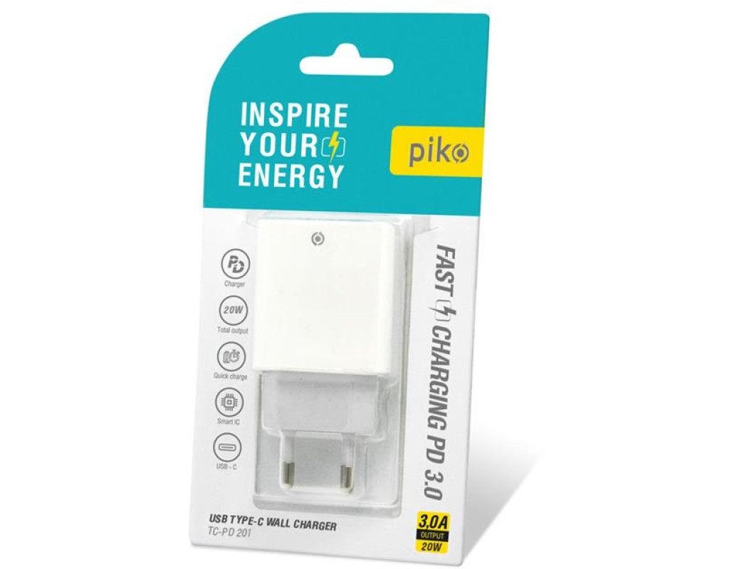 | Сучасно: Зарядний пристрій Piko TC-PD201 має сучасний роз’єм Type-C. Це дає змогу ефективно використовувати його для заряджання новітніх смартфонів й інших цифрових пристроїв.