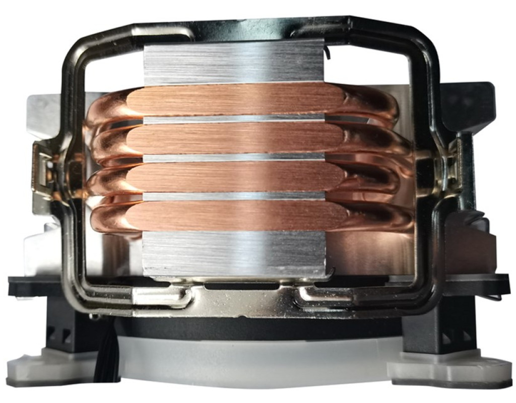 Для процесорів - INTEL, AMD, сокет - FM1, AM2, FM2, AM3, AM4, 775, 1150, 1151, 1155, 1156, 1200, матеріал радіатора - алюміній + мідь, діаметр вентиляторів - 120 мм, Максимальна частота обертів - 1600 об/хв, Тип підшипників - гідродинамічний (FDB Bearing), рівень шуму - 26.2 dBA, роз'єми живлення - 4-pin, Підсвічування - ARGB, 4 теплові трубки