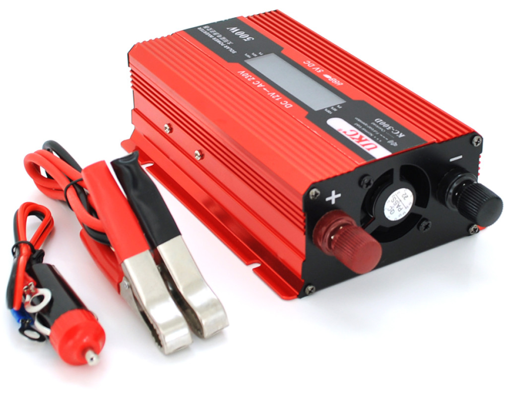 Інвертор напруги UKC+LCD, 500ВА(300Вт), 12 / 220V, approximated, 1 універсальна розетка, клем + крокодили