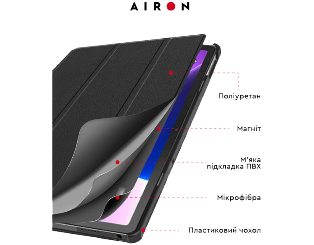 Чохол AIRON Premium – це ультратонкий чохол-книжка для Lenovo tab M10 Plus 3rd Gen 2022 10.6 ", який ідеально доповнить зовнішній вигляд пристрою та надійно захистить його від механічних пошкоджень. Внутрішнє покриття обкладинки - це м'яка мікрофібра. Вона здатна очищати поверхню екрану від відбитків пальців і дрібних забруднень. Конструкція посилена міцним пластиковим каркасом, що забезпечує необхідну жорсткість та протиударний ефект. Конструкція чохла дозволяє без особливих зусиль перетворити його на підставку, що дуже зручно, коли ви втомилися і хочете просто подивитися фільм. Ви просто складаєте пробіговану передню обкладинку по згинах і ви отримуєте трикутну підніжку Lenovo tab M10 Plus 3rd Gen 2022. В комплекті з чохлом AIRON Premium ви отримуєте в подарунок серветку з мікрофібри. Завдяки їй ви зможете очищати поверхню екрану Lenovo tab M10 Plus 3rd Gen 2022 10.6 " до блискучого вигляду. А захисна плівка збереже бездоганний вигляд дисплею. Основні переваги обкладинки: