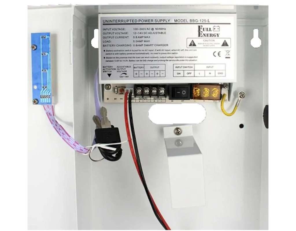 Блок безперебійного живлення Full Energy BBG-125-L для відеоспостереження 12В, 5А, під 18Аг акумулятор. Безперебійний блок живлення імпульсний, одноканальний. Живлення AC100-240V / 50-60Hz клемник, вихідна напруга DC12...14V / 5A, клемник. Відсік для акумулятора: 12В, 18Аг. Захист від перенапруги, КЗ, перевантаження по струму, а також захист заряду / розряду акумулятора. Корпус металевий з кришкою і замком. Розміри 300х195х80 мм Акумулятор не входить до комплекту |