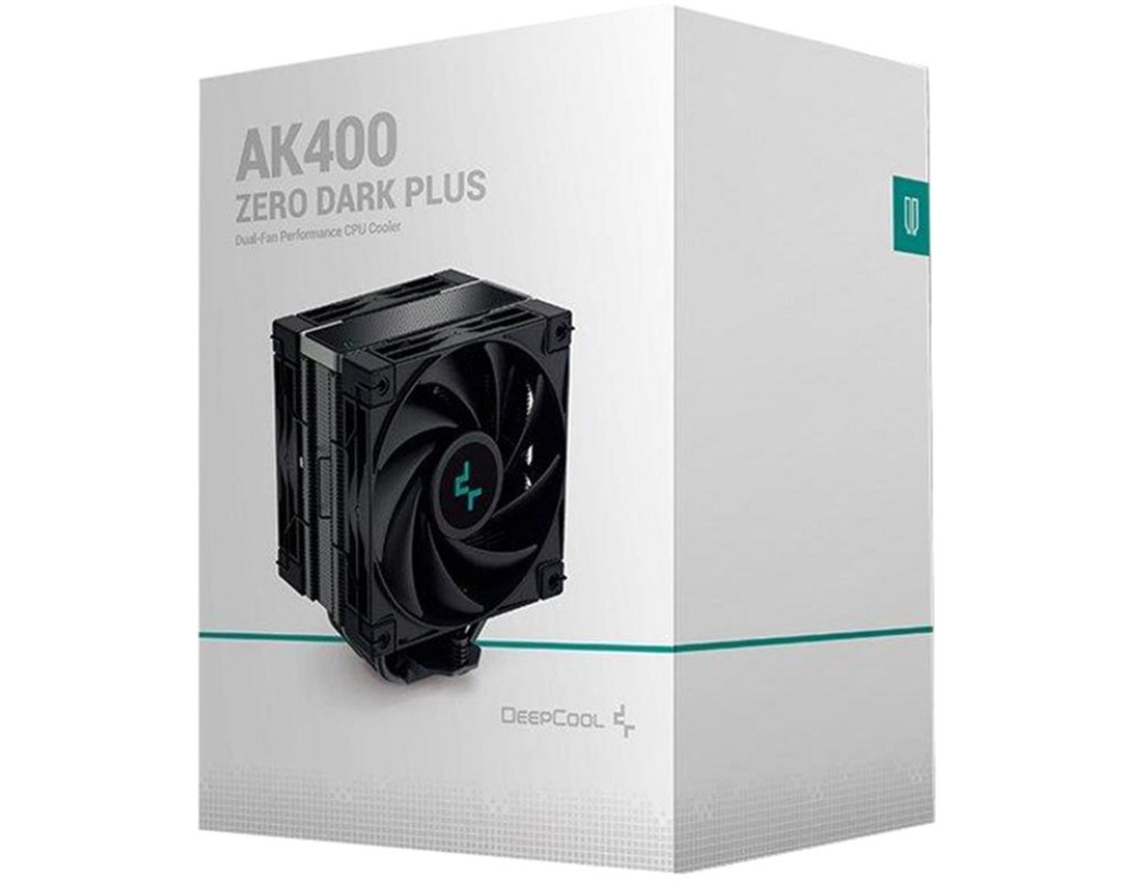 | Deepcool AK400 Zero Dark Plus — процесорний кулер, оснащений чотирма тепловими трубками, які забезпечують швидку передачу тепла в радіатор. Тепло розсіюється двома 120-мм вентиляторами. Він має широкі лопаті, які здатні захопити велику кількість повітря. За одну хвилину виріб виконує 500-1650 обертів. Підключається пристрій за допомогою конектора 4 Pin. Виріб підійде для всіх вказаних сокетів. |