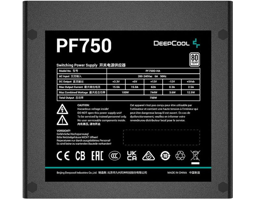| Блок живлення Deepcool 750W (R-PF750D-HA0B-EU) є відмінним вибором для ентузіастів та професіоналів, які шукають надійне та ефективне рішення для комп'ютерних систем. Завдяки потужності в 750 Вт, цей блок живлення легко впорається з будь-якими завданнями, гарантуючи стабільну роботу вашого ПК. Сертифікація 80 PLUS гарантує, що Deepcool 750W забезпечує ефективність на рівні не менше 85% при типовому навантаженні у 50%. Це не лише означає зменшене енергоспоживання і, відповідно, економію коштів на електроенергію, але й менше нагрівання компонентів та знижені втрати енергії. Енергоефективність є одним із ключових факторів при виборі блоку живлення, і Deepcool демонструє високу якість в цьому аспекті. Цей блок живлення відповідає стандарту ATX, що робить його сумісним з більшістю сучасних комп'ютерних корпусів. Щодо налаштувань підключення, він обладнаний універсальним роз'ємом для материнської плати на 20+4 pin і двома наборами 4+4pin для процесора, що дозволяє інтегрувати його майже в будь-яку систему. Крім того, він підтримує до чотирьох відеокарт із роз'ємами 4x6+2 pin, що забезпечує гнучкість при масштабуванні конфігурації вашого ПК. Особливої уваги заслуговує система охолодження Deepcool 750W. Вентилятор діаметром 120 мм оснащений рідинним підшипником, який знижує рівень шуму і вібрації, продовжуючи термін служби пристрою. Це рішення ідеальне для тих, хто цінує тишу під час роботи, адже шум від вентилятора буде мінімальним навіть при великих навантаженнях. Кабелі Deepcool 750W виконані у вигляді плоских чорних стрічок, що робить їх гнучкими і зручними для укладання всередині корпусу. Така конструкція кабелів не тільки полегшує монтаж, але й сприяє кращій циркуляції повітря, запобігаючи перегріву системи. Блок живлення обладнаний усіма необхідними засобами захисту: OVP (захист від підвищеної напруги), UVP (захист від зниженої напруги), SCP (захист від короткого замикання), та OPP (захист від перевантаження по сумарній потужності). Такий набір забезпечує комплексне безпекове покриття для вашої системи. Розмір блоку становить 150 x 140 x 86 мм, що робить його сумісним з багатьма стандартними корпусами, дозволяючи гнучко обирати компоненти для вашої системи. Deepcool 750W – це поєднання інновацій, безпеки та стабільності, ідеальне рішення для тих, хто шукає оптимального співвідношення ціни та якості. Цей блок живлення стане надійним партнером для вашого комп'ютера, забезпечуючи безперервну роботу системи навіть при пікових навантаженнях. |