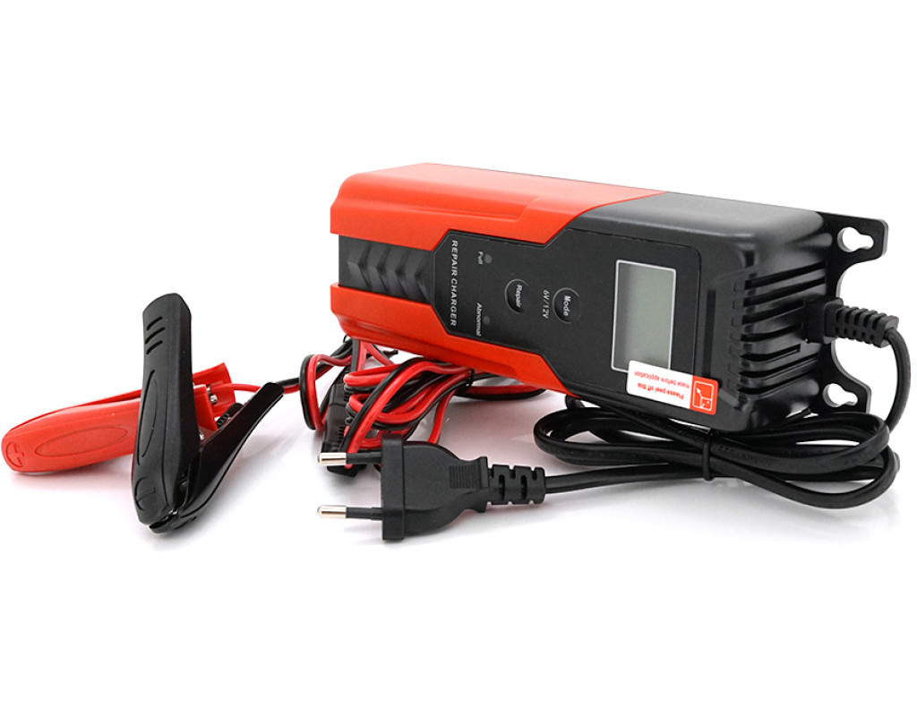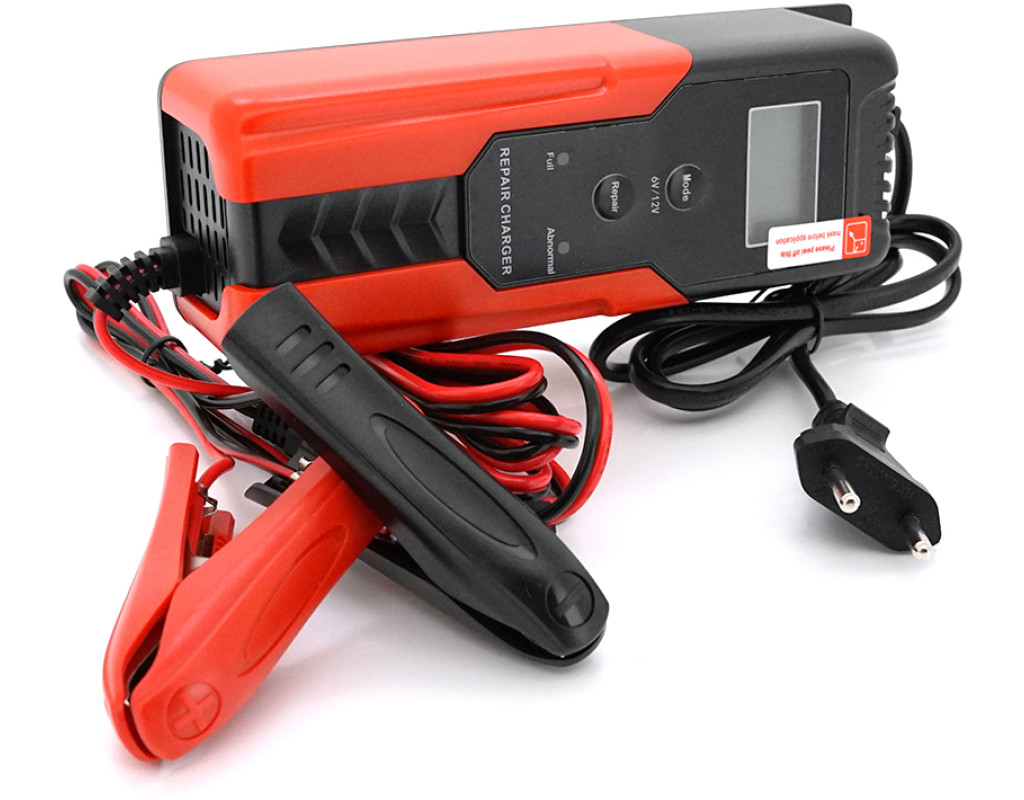 | Автоматичний зарядний пристрій R12 потужністю 65 Вт – це інтелектуальний прилад для обслуговування свинцево-кислотних акумуляторів напругою 6 та 12 вольт. Пристрій оснащений мікропроцесорним керуванням та рідкокристалічним дисплеєм, що забезпечує наочний контроль процесу зарядки. Завдяки можливості вибору режимів роботи та функції відновлення (десульфатації), цей зарядний пристрій підходить не тільки для регулярного підзаряджання, але й для реанімації глибоко розряджених батарей. Цей зарядний пристрій призначений для обслуговування акумуляторів легкових автомобілів, мотоциклів, квадроциклів, скутерів, газонокосарок, а також іншої садової та мототехніки з батареями ємністю від 4.5 до 100 Ач. Воно вирішує ключові завдання: забезпечує правильне та безпечне заряджання акумулятора з оптимальними параметрами, запобігає його перезаряду та сульфатації, а також дозволяє відновлювати працездатність деяких батарей за допомогою спеціального режиму. Пристрій ідеально підходить для автовласників, мотоциклістів, власників садової техніки та всіх, кому необхідний надійний та функціональний зарядний пристрій для домашнього гаража чи майстерні. - Автоматичне визначення та підтримка акумуляторів напругою 6В та 12В різних типів: гелевих (GEL), рідинних (Wet), необслуговуваних (MF) та всіх інших свинцево-кислотних батарей. - Інтелектуальний вибір режиму заряджання зі струмом 2А для 6В акумуляторів та 2А або 4А для 12В акумуляторів, залежно від ємності батареї. - Два режими заряджання для різних умов: Normal Mode (стандартний) та Winter Mode (зимовий режим з підвищеною напругою для роботи при низьких температурах). - Спеціальний режим відновлення (Repair) для десульфатації пластин та спроби реанімації глибоко розряджених або сульфатованих акумуляторів. - Інформативний рідкокристалічний дисплей (LCD) для відображення поточної напруги, вибраного режиму та статусу процесу заряджання. - Світлодіодні індикатори Charge LED (заряджання) та Error LED (помилка) для швидкої візуальної оцінки стану. - Широкий діапазон робочих температур від -20°C до +50°C, що дозволяє використовувати пристрій у неопалюваних приміщеннях. - Компактний корпус з довгими з`єднувальними проводами: вхідний 90 см та вихідний 170 см для зручності підключення. - Повна автоматизація процесу із захистом від переполюсування, короткого замикання та перегріву. Технічні характеристики: • Модель: R12 • Тип пристрою: автоматичний зарядний пристрій з функцією відновлення • Потужність: 65 Вт • Вхідна напруга: 100 – 240 В змінного струму (50 / 60 Гц) • Вихідна напруга та струм: - 6В акумулятори: режим Normal Mode – 7.2В / 2А; режим Winter Mode – 7.4В / 2А - 12В акумулятори: режим Normal Mode – 14.6В / 2А чи 4А; режим Winter Mode – 14.8В / 2А чи 4А • Підтримувана напруга акумуляторів: 6 В / 12 В • Ємність акумуляторів, що рекомендується: від 4.5 Ач до 100 Ач • Типи акумуляторів, що підтримуються: гелеві (GEL), рідинні (Wet), необслуговувані (MF) та всі інші свинцево-кислотні (Lead-acid) батареї 6В / 12В • Тип індикації: рідкокристалічний дисплей (LCD) та світлодіодні індикатори (Charge LED, Error LED) • Режими роботи: Normal Mode, Winter Mode, Repair (відновлення) • Довжина вхідного кабелю: 90 см • Довжина вихідного кабелю із затискачами: 170 см • Робоча температура: від -20°C до +50°C • Габаритні розміри (Д x Ш x В): 172 x 62 x 50 мм • Захисні функції: від переполюсування, короткого замикання, перегріву Автоматичний зарядний пристр