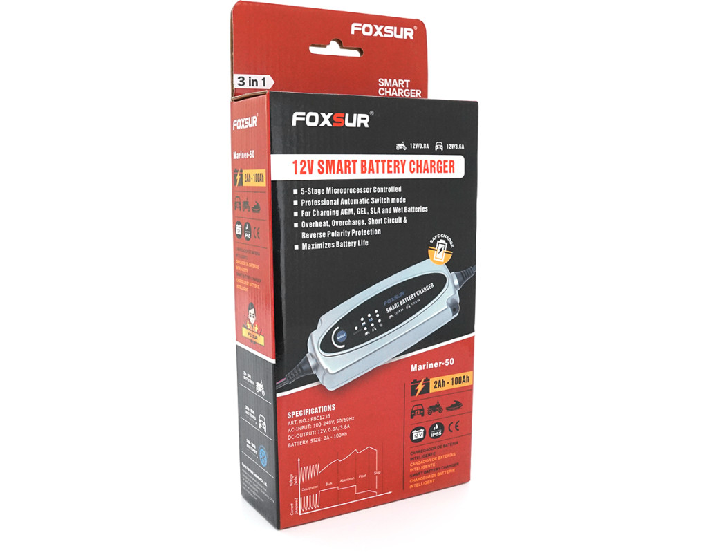 | Автоматичний зарядний пристрій Foxsur FBC1236 призначений для заряджання та обслуговування акумуляторів напругою 6 і 12 В. Підходить для свинцево-кислотних акумуляторів типів AGM, GEL і Lead-Acid. Пристрій оснащений інтелектуальною системою заряджання, яка автоматично підбирає оптимальний режим, запобігаючи перезаряду та продовжуючи термін служби акумулятора. Підтримує широкий діапазон вхідної напруги 100-240 В, що дозволяє використовувати його в побутових та гаражних умовах. Зарядний струм регулюється в діапазоні 0,2–10 А, завдяки чому пристрій підходить як для невеликих, так і для більш ємних акумуляторів. Підключення здійснюється за допомогою клем, що забезпечують надійний контакт. Переваги: автоматичний режим роботи захист від перезаряду, короткого замикання та перегріву сумісність з AGM, GEL та свинцево-кислотними АКБ компактний та зручний у використанні підходить для авто-, мото- та побутових акумуляторів. |