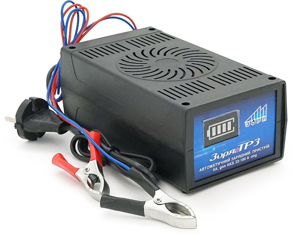 | Трансформаторний зарядний пристрій Зоря ТР-3, призначений для заряджання 12 В акумуляторний батарей від 32 до 100 А * год зарядним струмом до 6 А. Пристрій виконаний у пластиковому корпусі. На лицьовій панелі є індикатор заряду. Є захист від перегріву. Вхідна напруга 220 В Ємність акумуляторів, що заряджаються 32 - 100 А*ч Напруга заряду 12 В Максимальний струм заряду 6 А Габаритні розміри 95 х 170 х 65 мм Вага 1.35 кг |