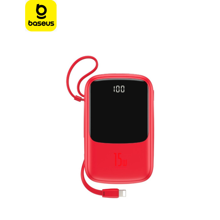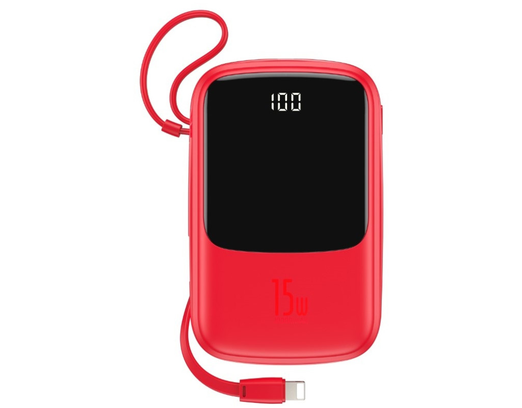 | Повербанк Baseus QPow 10000mAh 15W, USB-C, USB-A, out.:3A, with cable to Lightning, red (PPQD-B09) |