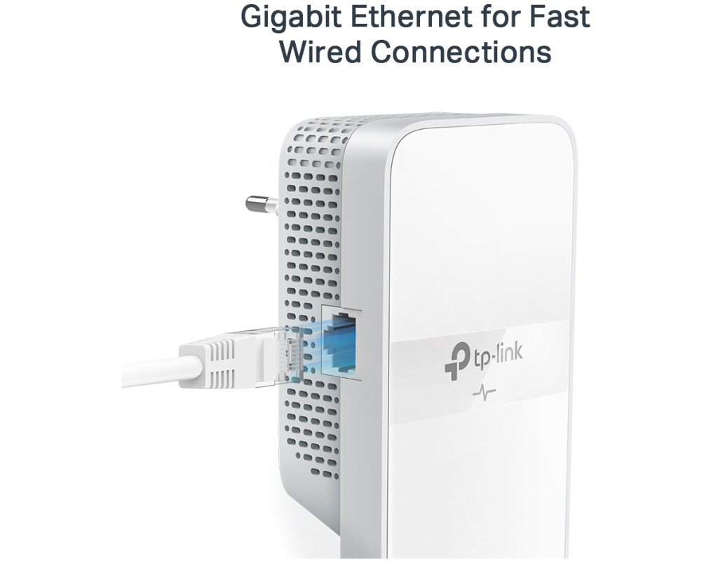 TL-WPA7617 KIT комплект AV1000 Гігабітних Powerline Wi-Fi адапторів АС стандарту. Краще життя з надшвидким розширювачем Wi-Fi з використанням існуючої електричної системи. Комплект AV1000 Гігабітних Powerline Wi-Fi адапторів АС стандарту. Легко поширте швидкий та надійний Wi-Fi у кожну кімнату. Продукти Powerline TL-WPA7617 KIT перетворюють існуючу електричну схему дому на надшвидкісну мережу та підключають дротові та бездротові мережі до будь-якого місця, де є розетка. Комплект AV1000 Гігабітних Powerline Wi-Fi адапторів АС стандарту - Сумісність зі стандартом Homeplug AV2 – забезпечує користувачам стабільну, високу швидкість передачі даних до 1000 Мбіт/с на лінії довжиною до 300 метрів