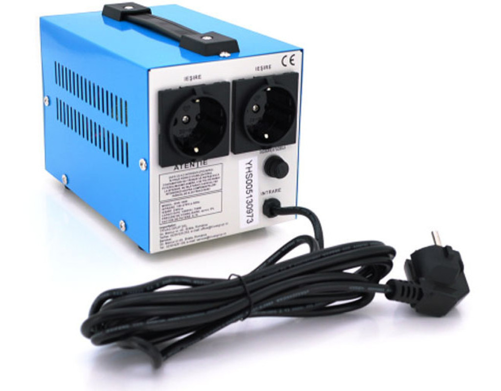 Спосіб установки - підлоговий, потужність, Вт - 750 Вт, потужність, ВА - 1000 VA, мінімальна вхідна напруга, В - 150V, максимальна вхідна напруга, В - 270V, точність стабілізації - ± 8 %, підключення до мережі 220В - вилка, кількість розеток - 2, відображення значень вхідного/вихідного напруг - цифровий індикатор