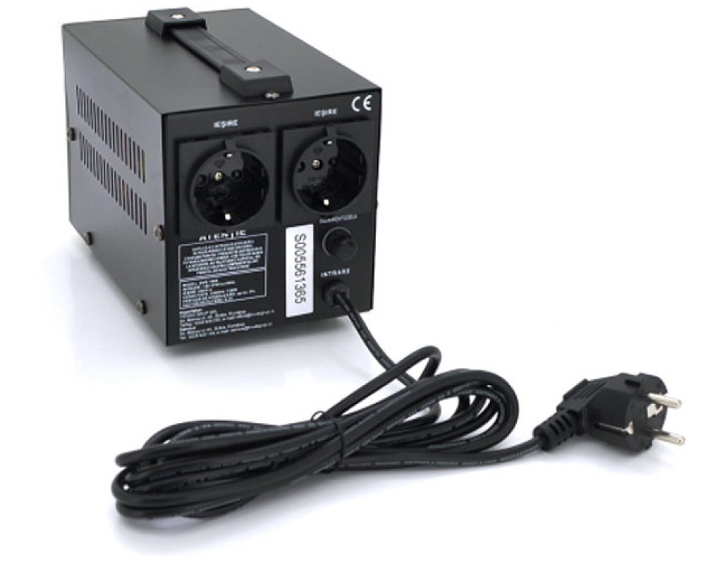 Спосіб установки - підлоговий, потужність, Вт - 750 Вт, потужність, ВА - 1000 VA, мінімальна вхідна напруга, В - 150V, максимальна вхідна напруга, В - 270V, точність стабілізації - ± 8 %, підключення до мережі 220В - вилка, кількість розеток - 2, відображення значень вхідного/вихідного напруг - цифровий індикатор