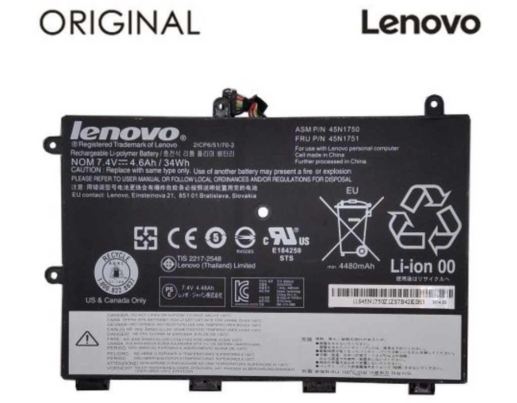 Акумулятор до ноутбука Lenovo ThinkPad Yoga 11e (45N1748) 7.4V 4600mAh (NB481439)