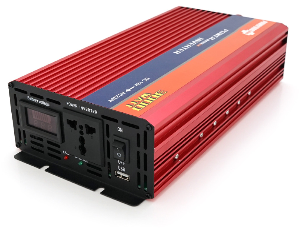 | Інвертор напруги NV-3000(1600Вт)+LCD, 12 / 220V, approximated, 1 універсальна розетка, клеми, Box |