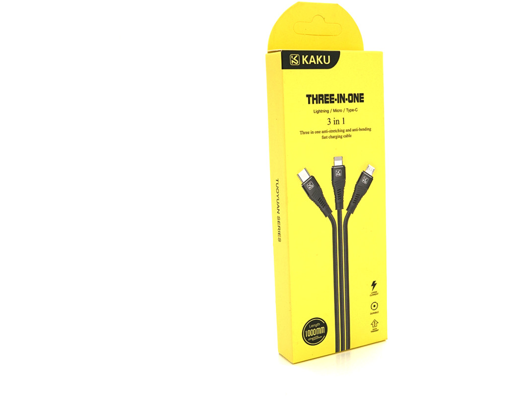 TUOYUAN KSC-296 3 in 1 charging and data cable is a universal solution for connecting various devices to a power source or computer. Compatibility with different interfaces makes it an ideal choice for users who require convenience and functionality. Usage: