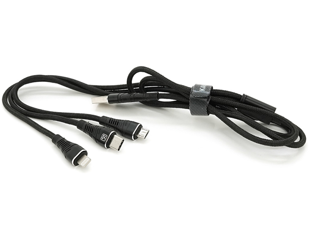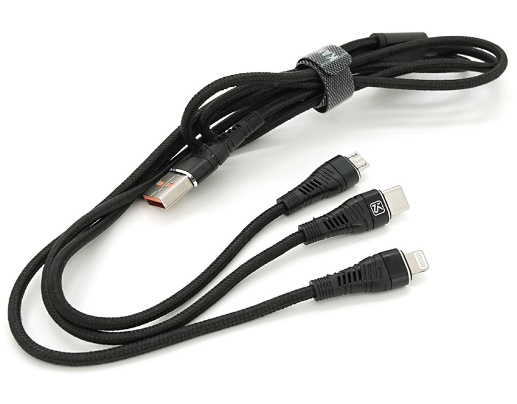 Кабель KSC-296 TUOYUAN charging data cable 3 in 1 Micro / Iphone / Type-C, довжина 1м, Black, BOX