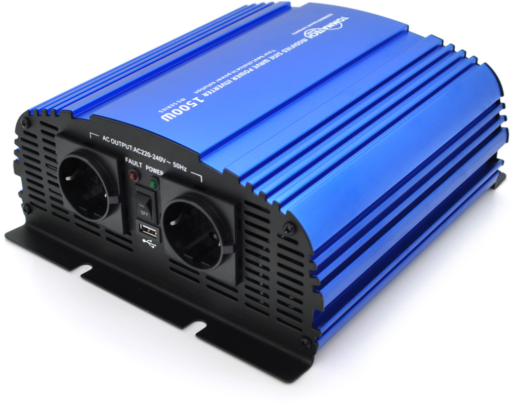 | Особливості: • Інвертор із модифікованою синусоїдою. • Захист від короткого замикання, низької напруги, перезаряджання, перенапруги, перевантаження, перегріву. • LED індикація: зелений – нормальна робота, червоний – несправність. • Заряджання телефону та ноутбука через вихідний USB-порт Характеристики: • Номінальна потужність: 1500Вт • Форма сигналу: модифікована синусоїда • Вхідна напруга: 12В постійного струму • Вихідна напруга: 220В змінного струму • Захист від короткого замикання: + • Захист від навантаження: + • Охолодження: вбудований вентилятор • Кількість розеток: 2 шт. • Кількість USB портів: 1 шт. • Вихід USB: 5V, 2,1A • Індикація: LED Комплектація: - Інвертор - Комплект дротів для підключення АКБ - Інструкція - Упаковка |