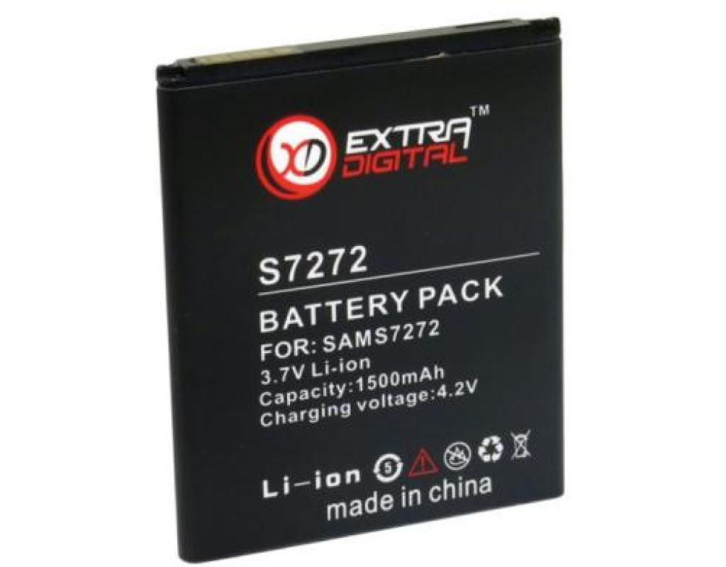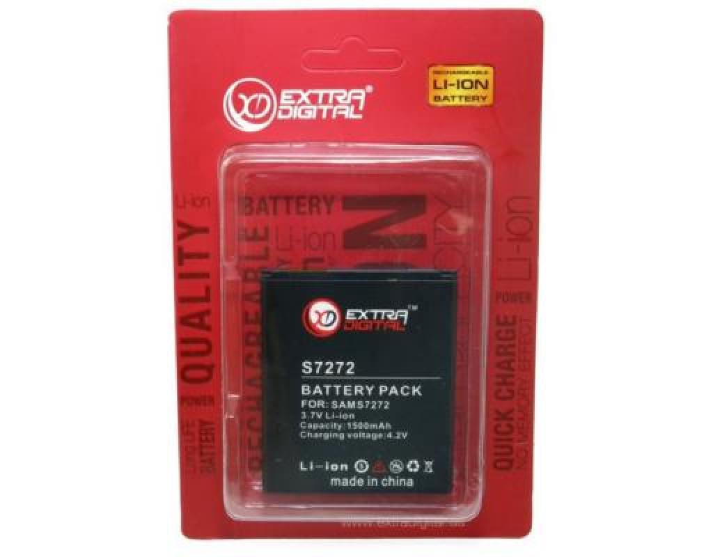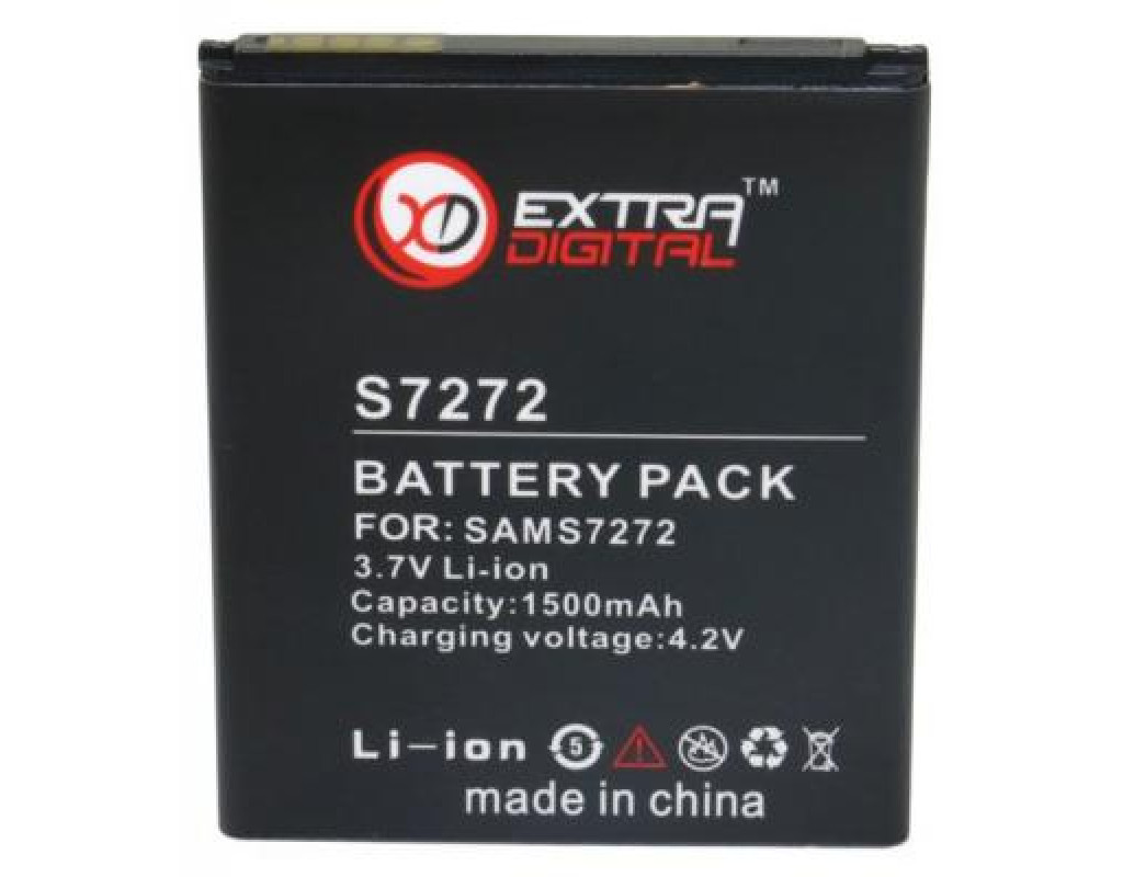 Призначення - для телефону, вид - стандартний, сумісність - Samsung, модель - Samsung S7270, Samsung S7272, Samsung GT-S7270L, Samsung GT-S7275, ємність - 1500mAh, тип акумулятора - Li-Ion, напруга - 3.7V, 60 х 50 х 4 мм, чорний, High-copy (репліка)