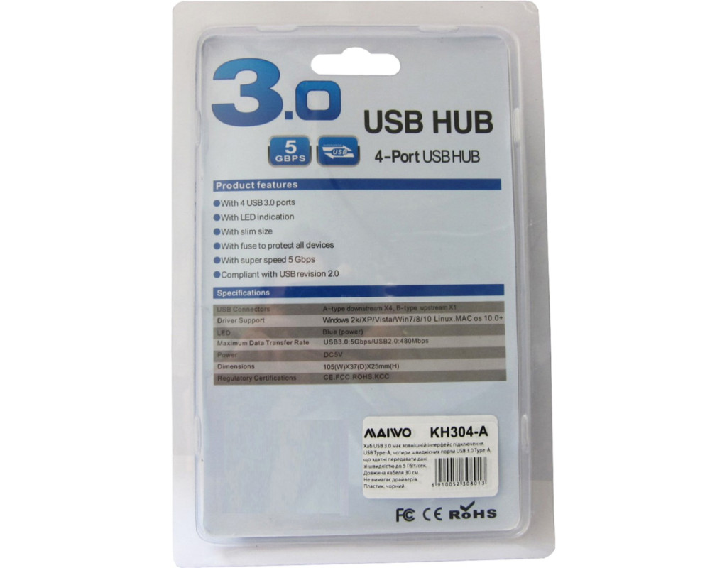 USB-хаб Maiwo KH304-A розширює можливості підключення вашого сучасного ноутбука або комп'ютера в тих випадках, коли на ньому не вистачає USB-портів для периферійних пристроїв або вони розташовані незручно, а також якщо ви не хочете розхитувати порт USB Type- A на вашому ноутбуці. Сам USB-хаб KH304-A підключається до ноутбука через порт USB 3.0 Type-A зі швидкістю передачі до 5 Гбіт/сек. Хаб KH304-A дає можливість одночасного підключення до 4-х пристроїв з різними інтерфейсами: USB3.1 Gen1 тип А (USB3.0 Type-A) / USB2.0 / USB1.1, розширюючи робоче місце та приватний простір. Він є ідеальним вибором для підключення пристроїв зовнішнього зберігання даних, USB-флешок, зовнішніх жорстких дисків, клавіатури, миші, цифрової або відеокамери спостереження, мережевих пристроїв, багатоканальних аудіопристроїв, а також будь-яких інших USB-пристроїв до вашого ноутбука із зовнішнім портом підключення USB Type- A. Інтерфейс підключення USB-хаба до ноутбука: USB 3.0 Type-A. Порти для підключення периферійних пристроїв: 4 порти USB 3.0 Type-A (USB 3.1 Gen1). Хаб KH304-A має круглу форму, а USB-порти розташовані з різних сторін і на великій відстані один від одного, це допомагає задіяти всі порти хаба таким чином, що пристрої не заважають один одному. Функція "швидкої заміни" дозволяє підключати/вимикати пристрої без вимкнення системи. Хаб має вбудований кабель завдовжки 30 см (він не від'єднується від хаба). На KH304-A є роз'єм для підключення блока живлення, але блок живлення в комплектацію не входить. Не потребує встановлення драйверів. На корпусі адаптера є LED-індикатор роботи. Підтримка ОС: Windows 7/8/10/Vista/XP, Linux, Mac OS X v.10.0 і вище. Матеріал – пластик, колір – чорний матовий. |