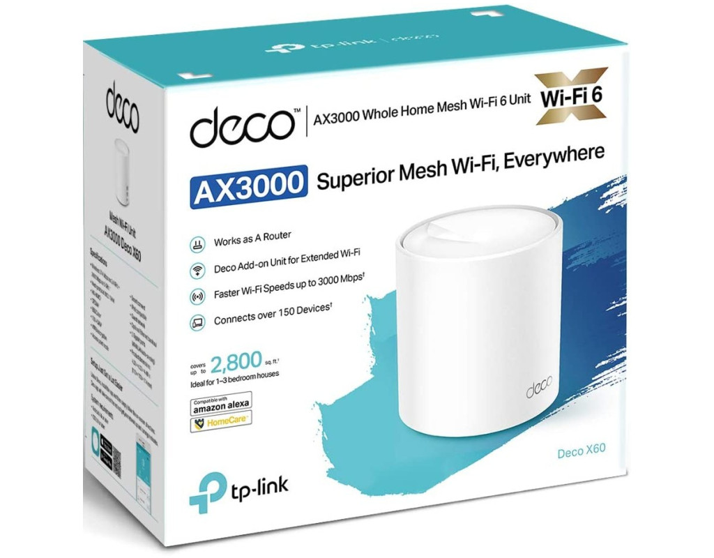 Правила змінюються: Wi-Fi 6 та Mesh Використання Wi-Fi 6 значно збільшує зону покриття, швидкість та загальну пропускну здатність Mesh системи Deco. Підключіться до найновішого стандарту Wi-Fi 6 і отримайте мережу майбутнього з вищою швидкістю і максимальним числом пристроїв, що підключаються. Завдяки технології Wi-Fi 6 Deco X60 створює більш ефективну мережу, яка в 4 рази збільшує середню пропускну здатність пристроїв, що підключаються в умовах щільного розміщення. Розумний Mesh — постійна адаптація та оптимізація Mesh-мережа Deco X60 працює під управлінням штучного інтелекту, який автоматично пристосовується до домашньої мережі, враховує якість підключення клієнтів та поведінку користувачів. Складні алгоритми враховують різні фактори, завдяки чому Deco X60 створює ідеальний Mesh Wi-Fi, унікальний для кожного будинку – переміщайтеся по дому та насолоджуйтесь безшовним підключенням на максимальній швидкості. Безшовний роумінг з одним ім'ям Wi-Fi Пристрої Deco формують єдину Wi-Fi мережу. Смартфони або планшети автоматично підключатимуться до Deco на максимальній швидкості в будь-якій точці будинку, забезпечуючи безперервне з'єднання. 6 потоків: бездоганна робота, мінімальна затримка Завдяки шести потокам даних пропускної спроможності буде більш ніж достатньо, щоб насолоджуватися швидкими онлайн-іграми та стрімінгом у 8К з бездоганною якістю відео та чистим звуком – навіть коли дані передаються з декількох пристроїв одночасно. Надайте захист домашньої мережі професіоналам Забезпечте додаткову безпеку домашньої мережі за допомогою вбудованої системи безпеки TP‑Link HomeShield, в якій є все необхідне для повного контролю над мережею: виявлення вразливостей у мережі, обмеження часу, що проводиться в мережі, та блокування сайтів. Налаштування стало ще простіше Просто розпакуйте Deco, встановіть програму та дотримуйтесь інструкцій на екрані. Deco сам налаштує підключення та підготує мережу до роботи лише за кілька хвилин. Просте управління Керуйте Wi-Fi з дому або віддалено через програму Deco. Вам доступний огляд та пріоритетність підключених пристроїв, налаштування гостьової мережі та не тільки. Голосове управління Підключіть Alexa та керуйте Deco X60 за допомогою голосових команд. Не відволікайтеся ні на що. Всі Deco працюють разом Deco X60 утворює єдину Mesh-мережу з усіма моделями Deco. Якщо необхідно збільшити покриття, просто додайте в мережу більше модулів. Прикрасьте свій будинок Завдяки простому витонченому дизайну білий Deco X60 відмінно впишеться в будь-який домашній інтер'єр. |