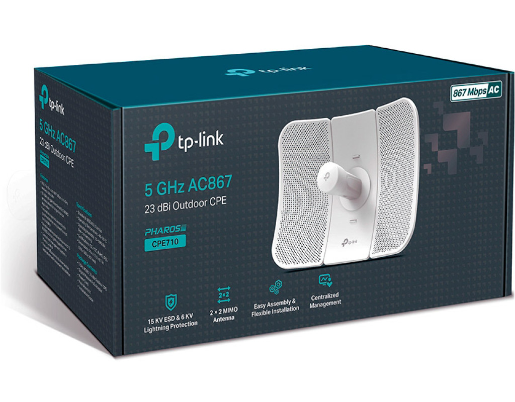 Блискавична швидкість Модуляція 256-QAM і ширина каналу в 80 МГц збільшують загальну швидкість до 867 Мбіт/с, що в 3 рази швидше стандарту Wi-Fi 802.11n. 23 дБі спрямована антена для далекобійної з'єднання Завдяки 23 дБі спрямованої антени високого підсилення з технологією 2 × 2 MIMO і металевого екранування CPE710 забезпечує відмінну спрямованість променя, зменшує затримки і поглинає шуми. Висока продуктивність у поєднанні зі зручним дизайном роблять точку доступу CPE710 ідеальним бюджетним рішенням для бездротової передачі даних на дальні відстані. Pharos Control – централізоване керування мережею Точки доступу CPE710 обладнані централізованим ПО для керування мережею – Pharos Control, яке дозволяє легко управляти всіма пристроями в мережі з одного ПК. Виявлення, моніторинг стану, оновлення вбудованого ПЗ, а також інші функції керування мережею можуть виконуватися за допомогою Pharos Control. Інтуїтивний веб-інтерфейс Pharos надає альтернативний спосіб керування мережею і дозволяє професійним користувачам виконувати більш детальні налаштування. |