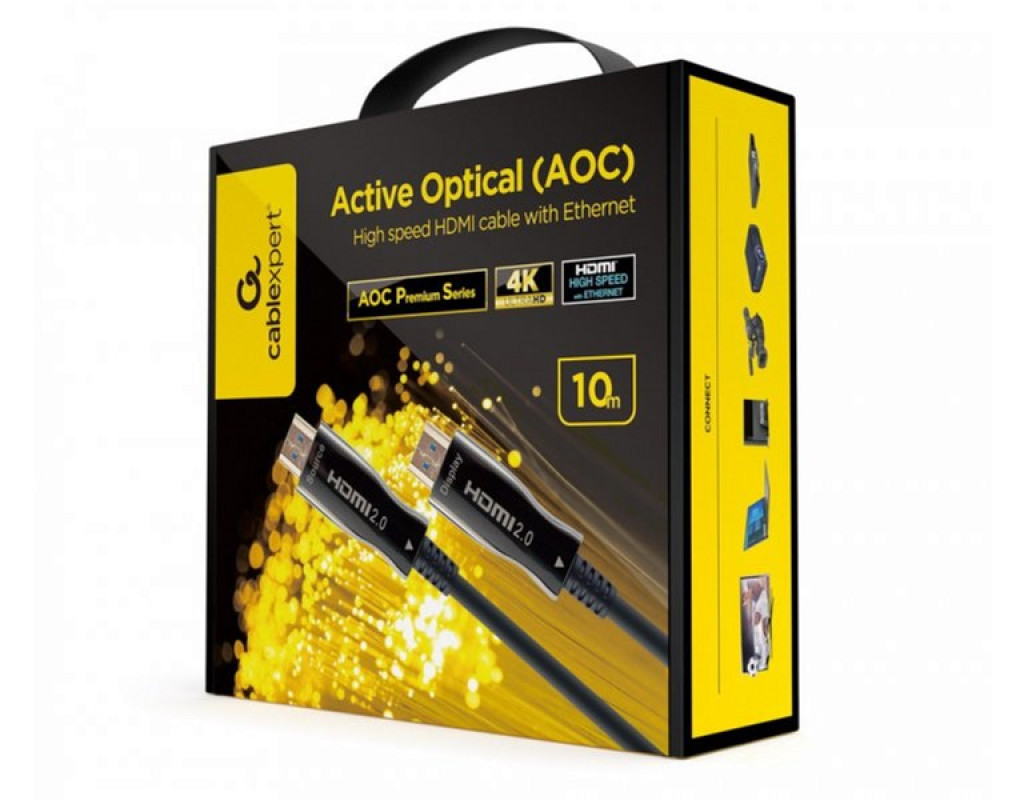 Кабель мультимедійний HDMI M to HDMI M 10.0m V2.0 AOC 4K60Hz gold Cablexpert (CCBP-HDMI-AOC-10M-02)